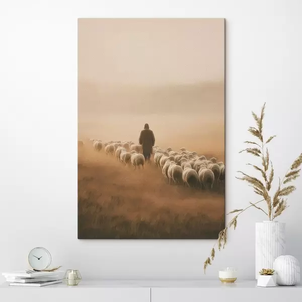 Картина пастух, що йде з отарою овець по відкритому полю Арт. s48077