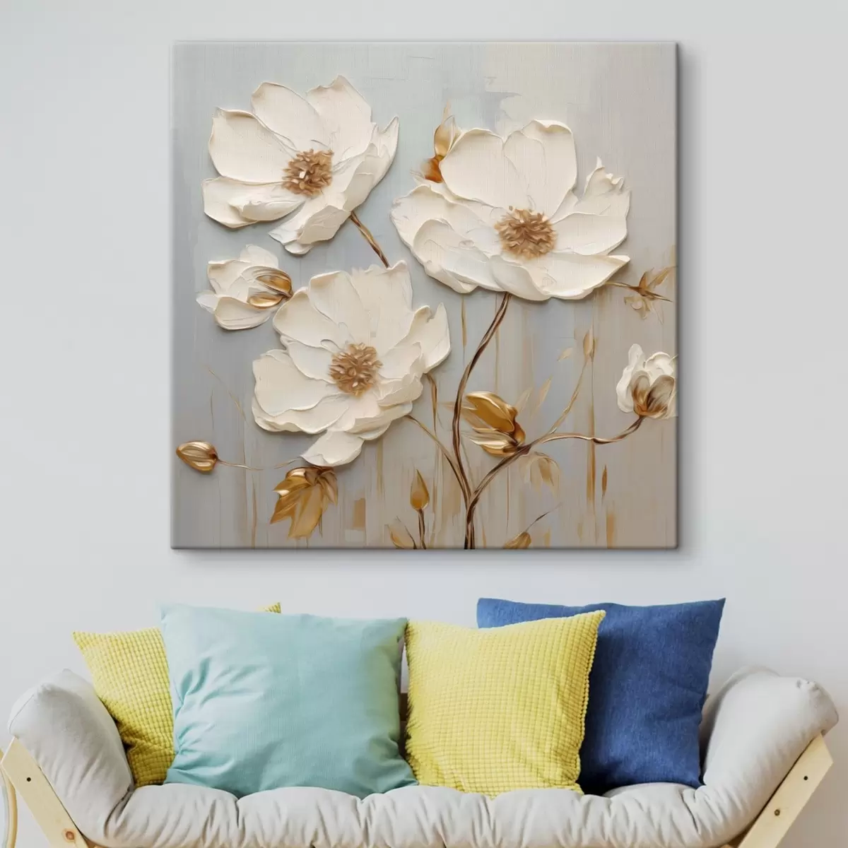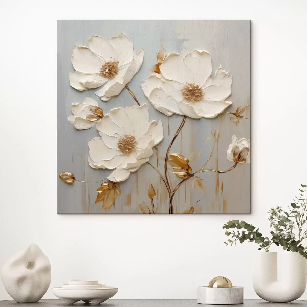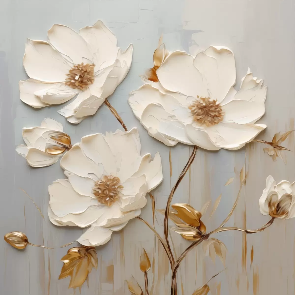 Картина Рельєфні білі квіти з теплими листям Арт. s48093