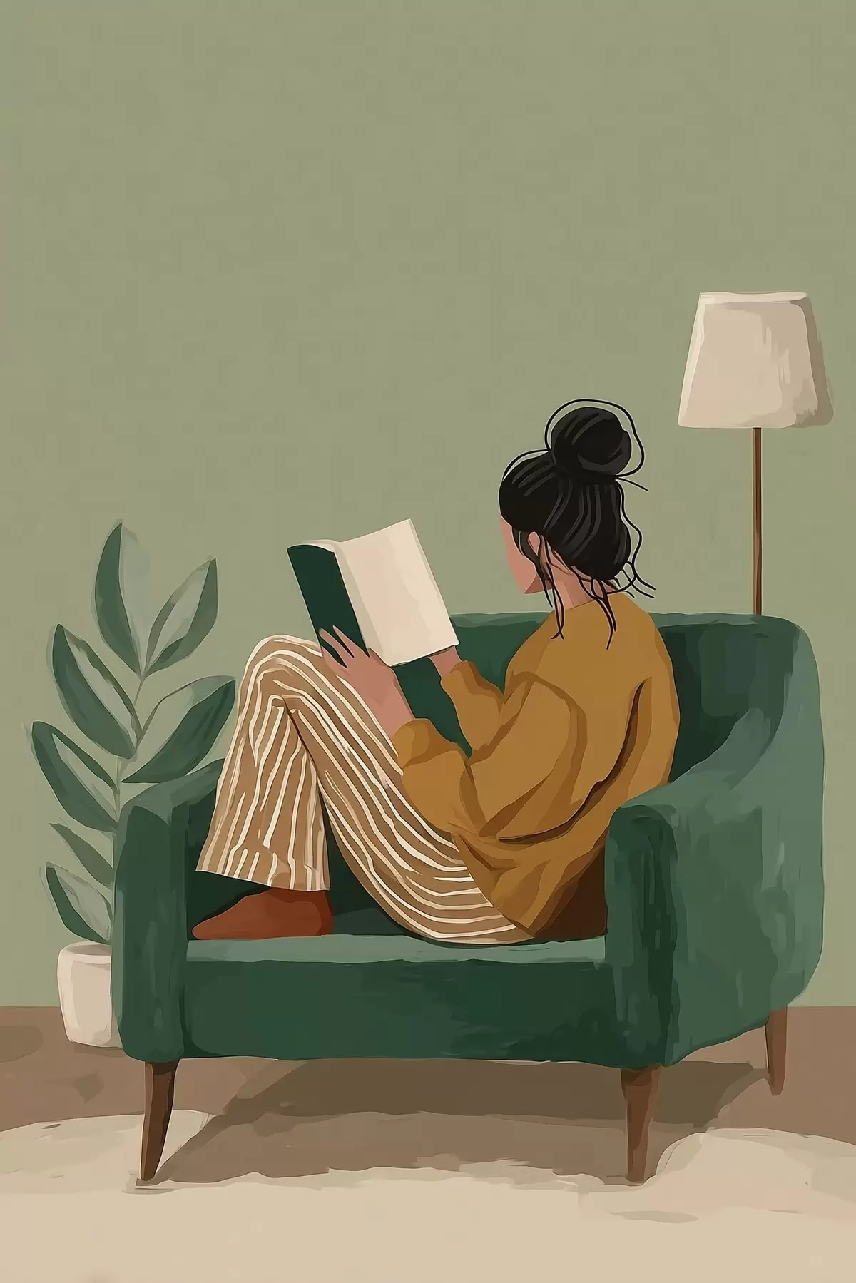 Картина мінімалістична затишна ілюстрація жінки, яка сидить у кріслі і читає s48118