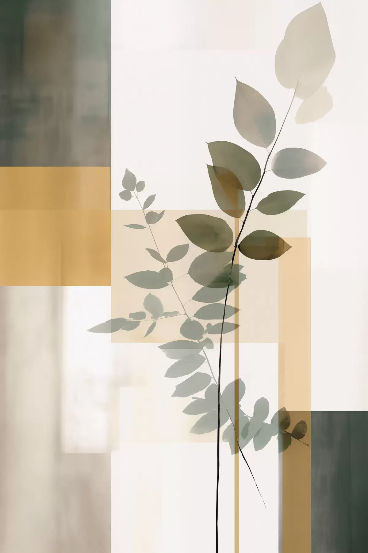 Картина Геометрична абстракція з гілками листя Арт. s48171