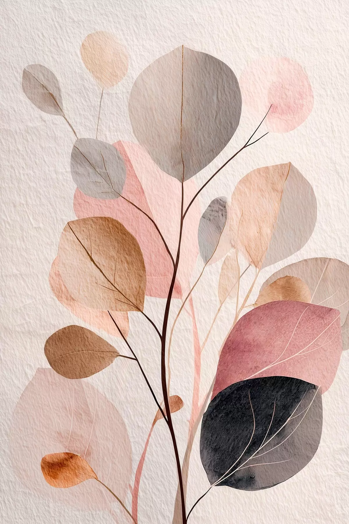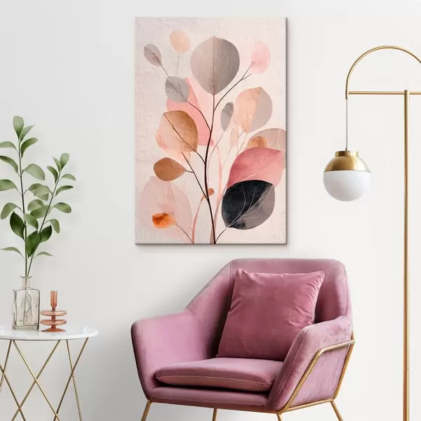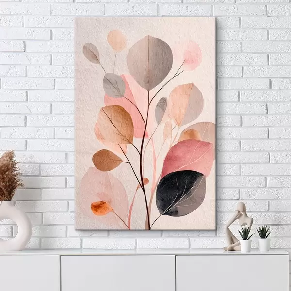 Картина Абстрактна гілка з округлими листками у теплих бежевих та коралових тонах Арт. s48187