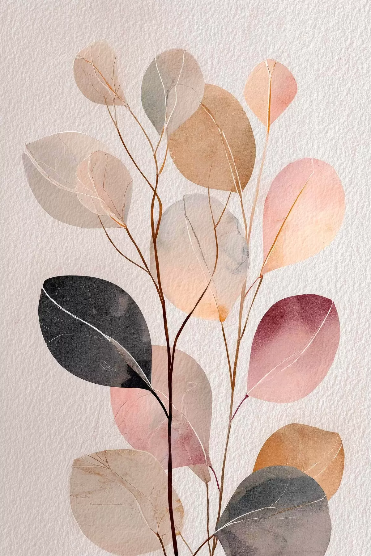 Картина Абстрактна гілка у бежевих та коралових тонах у стилі акварелі Арт. s48188