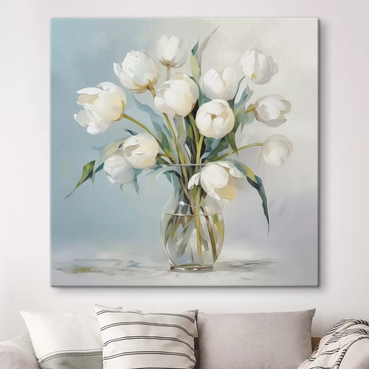 Картину можна повісити одразу після отримання. Картина буде натягнута на дерев'яний підрамник шириною 2 см.