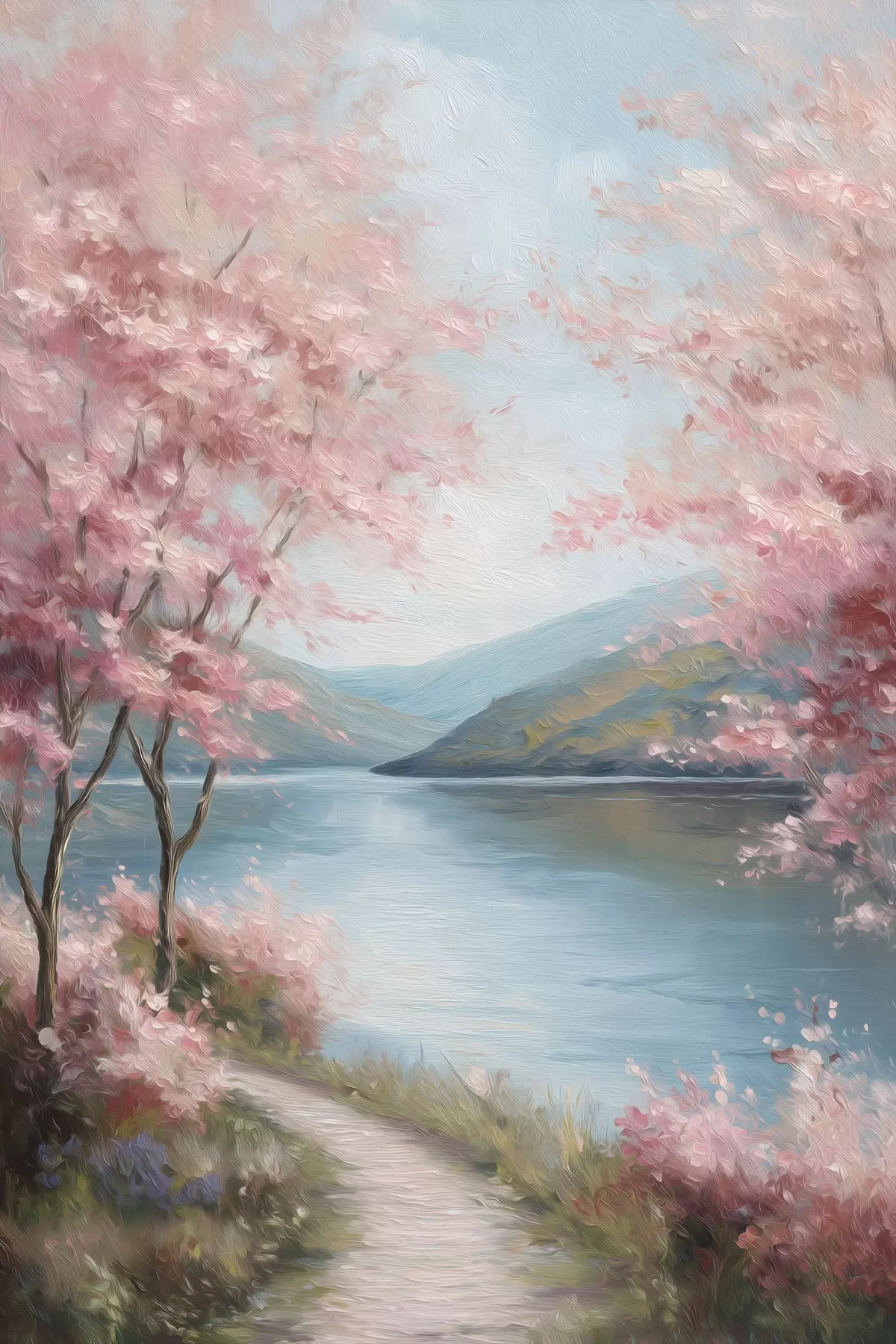 Картина пейзаж з рожевими деревами в олійному стилі s48290