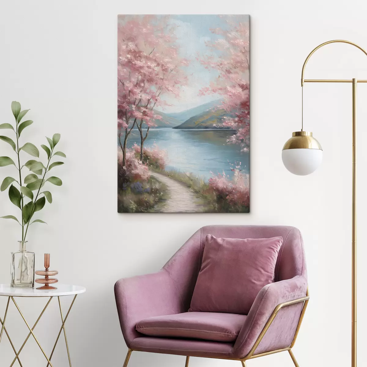 Картина пейзаж з рожевими деревами в олійному стилі Арт. s48290