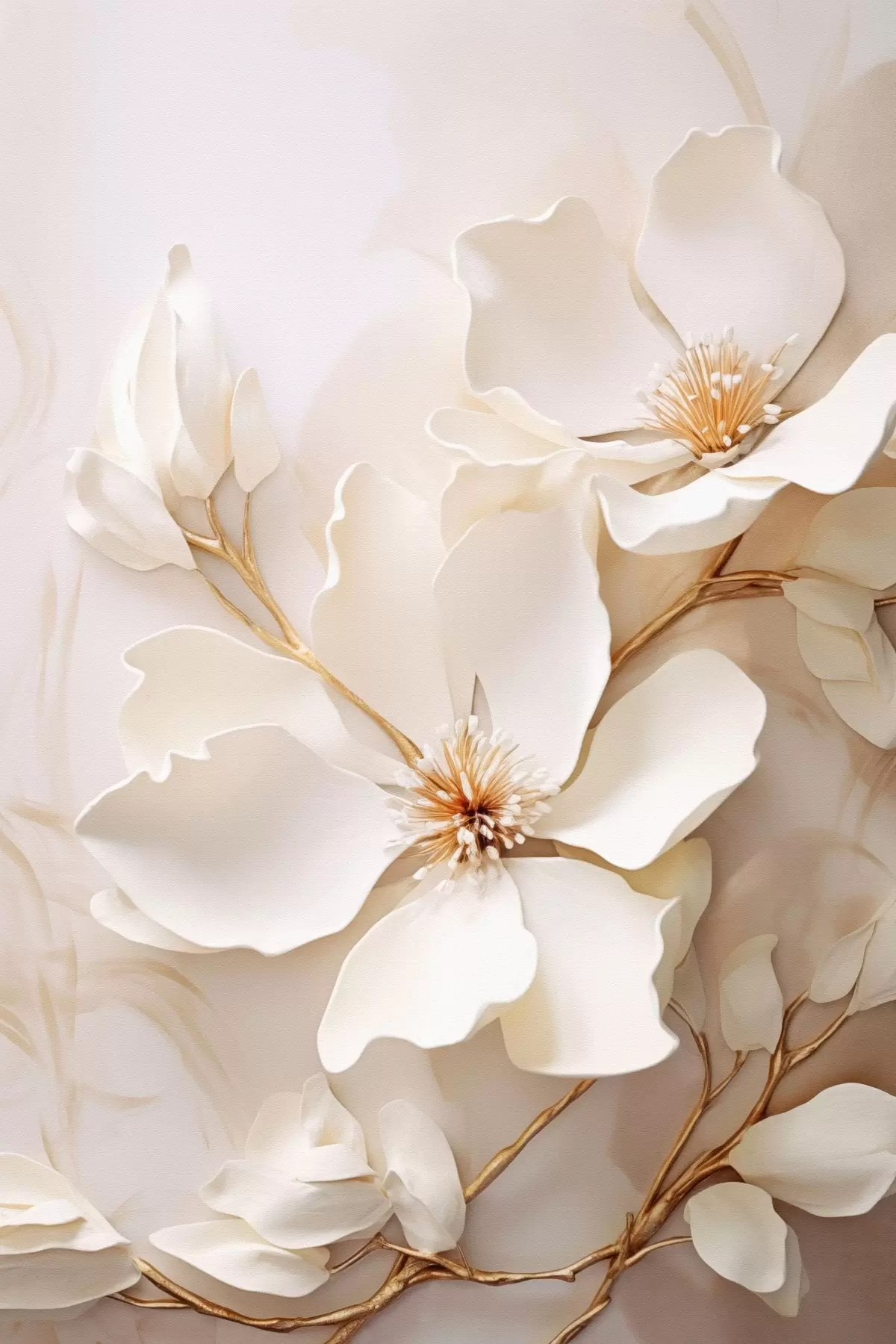 Картина Світлі квіти з тоненькими гілочками на пастельному тлі s48348
