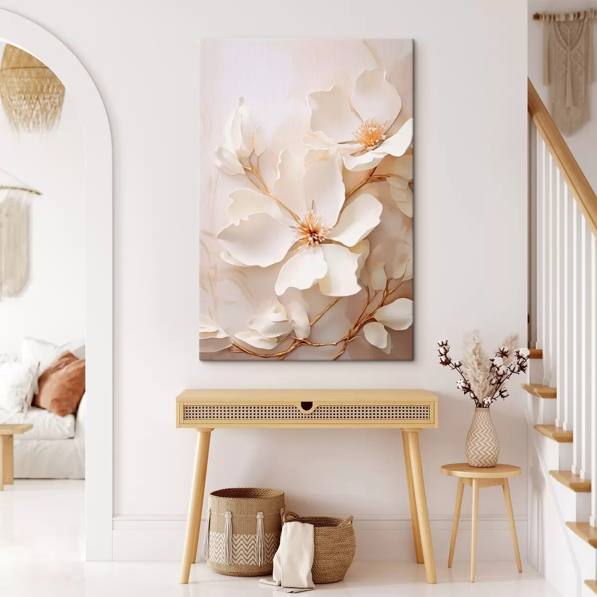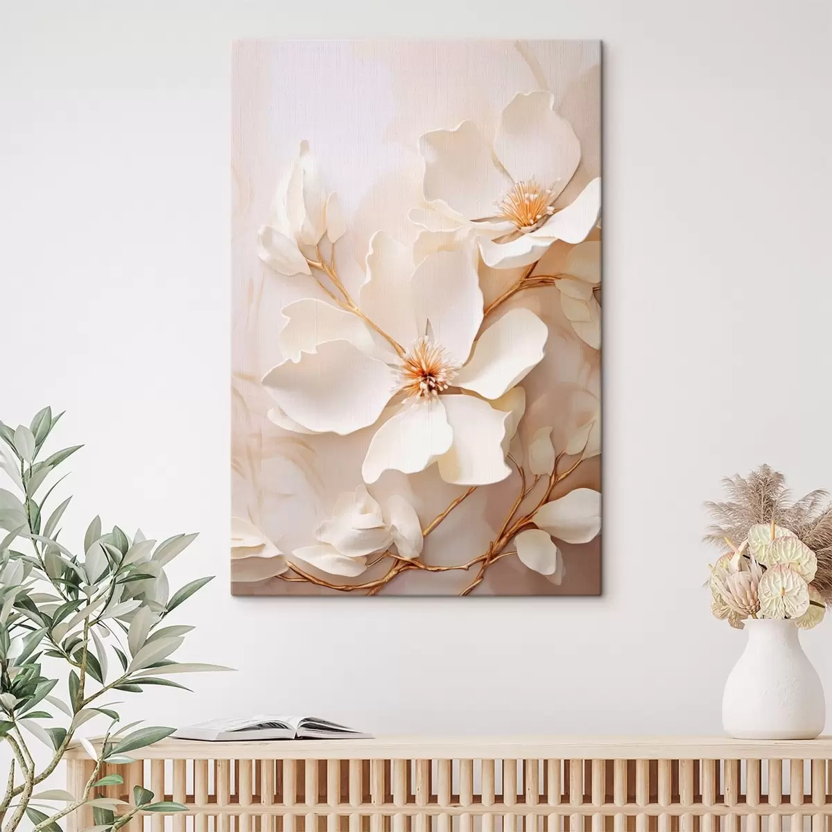 Картина Світлі квіти з тоненькими гілочками на пастельному тлі Арт. s48348