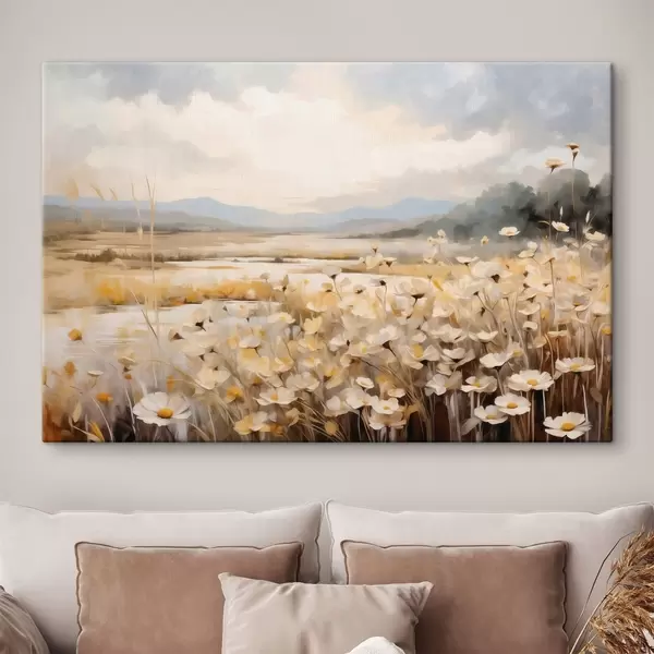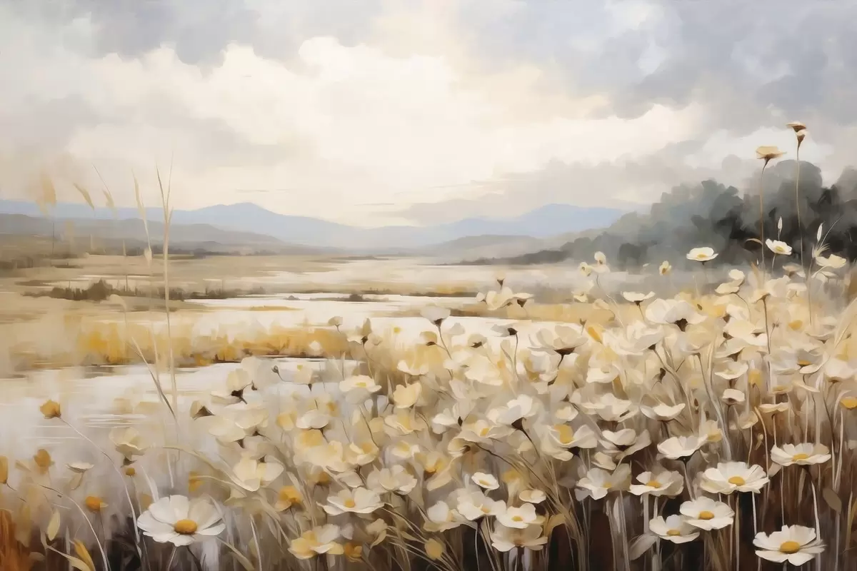 Картина Польові квіти біля води у м'якому живописному стилі s48354