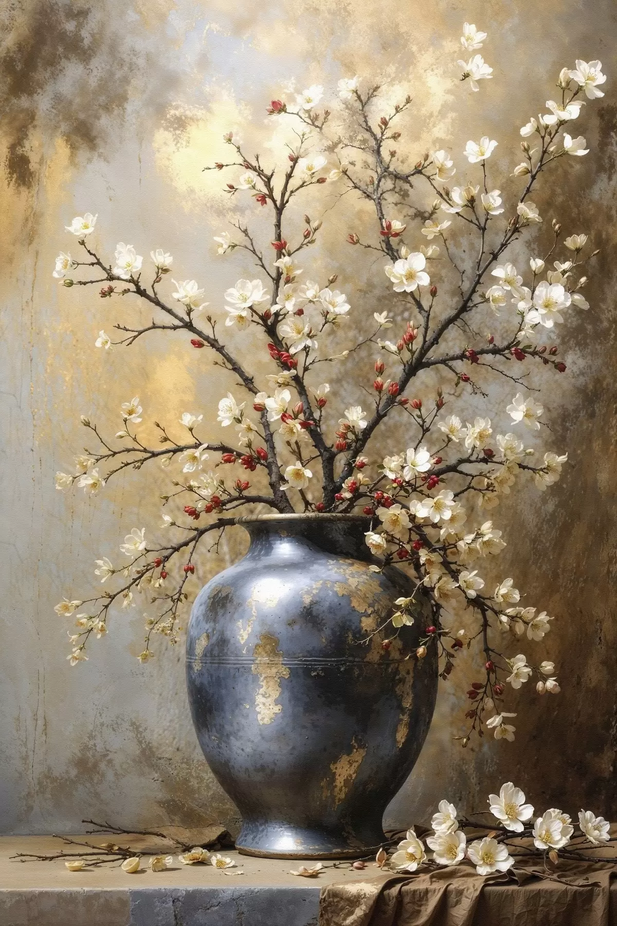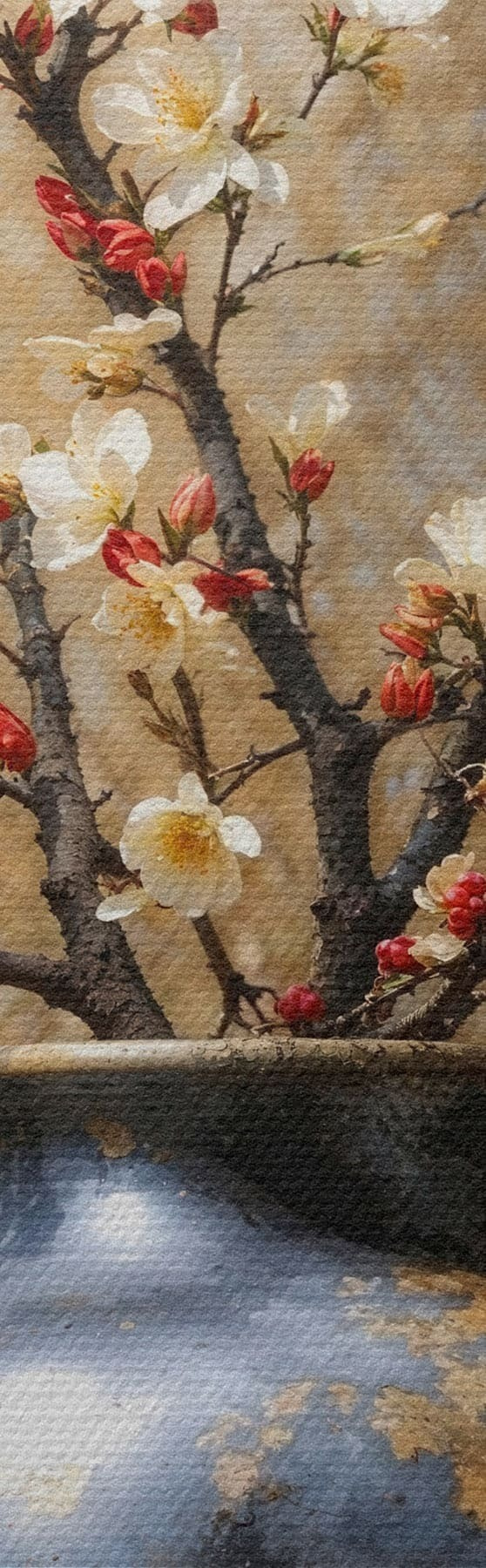 Картина Квітучі гілки у вазі на нейтральному тлі s48361