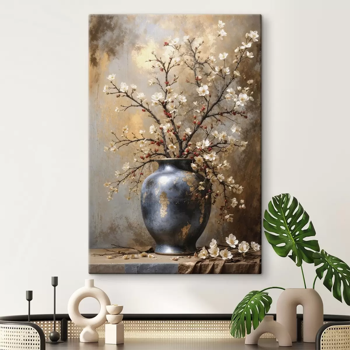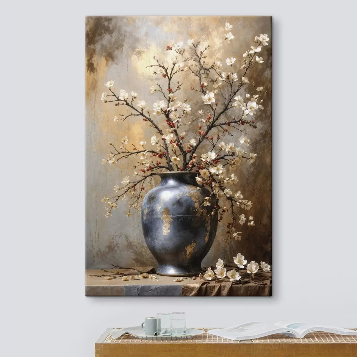 Картина Квітучі гілки у вазі на нейтральному тлі Арт. s48361