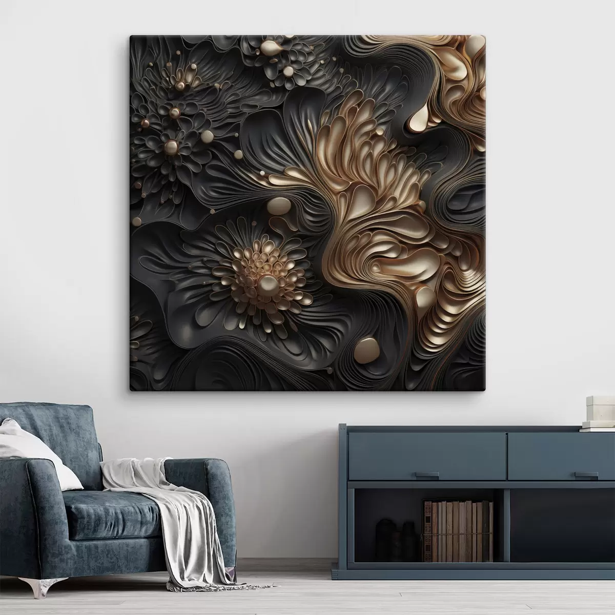 Картина Абстрактні, плавні, органічні темні форми, що створюють фактурне сучасне мистецтво Арт. s48384