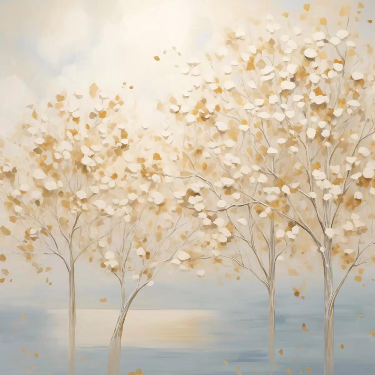 Картина Картина у фактурному стилі, на якій зображені дерева з білим та жовтим листям на світло-блакитному тлі s48392