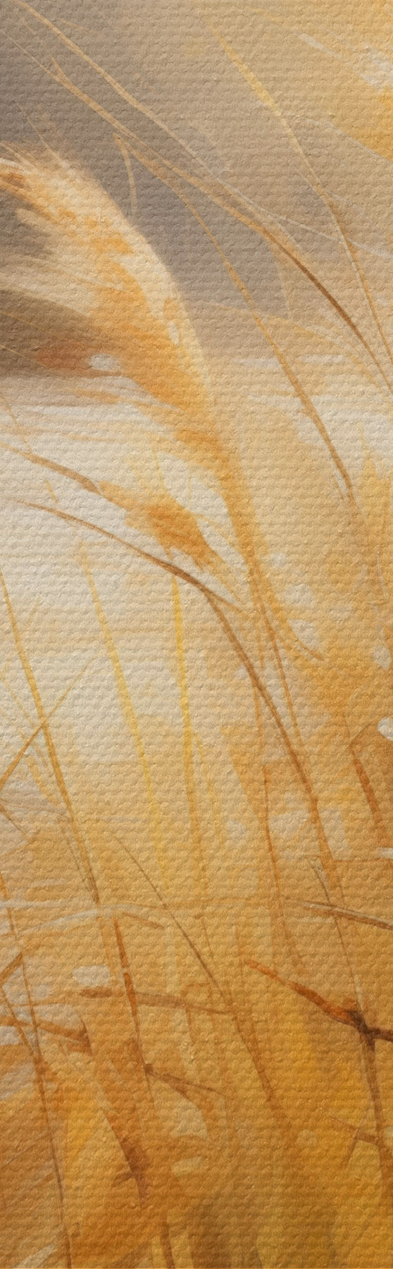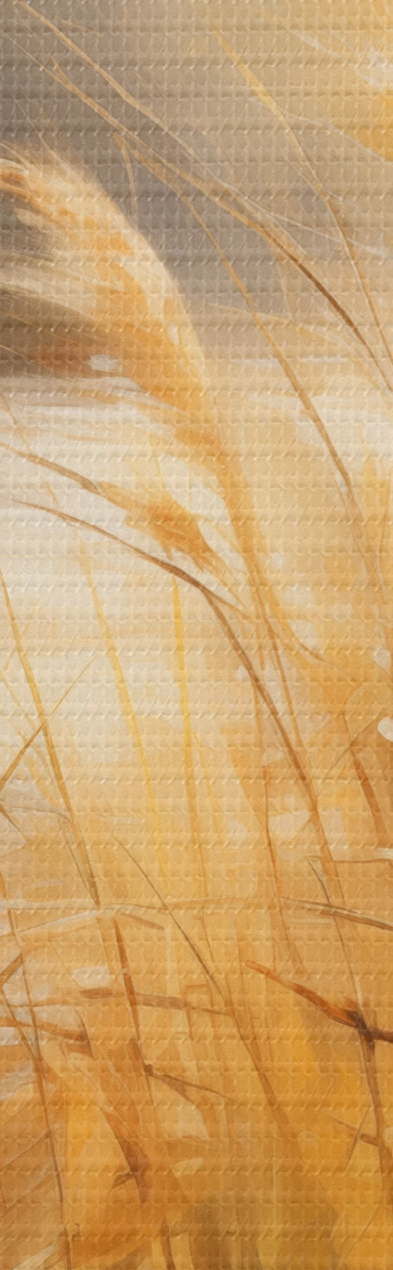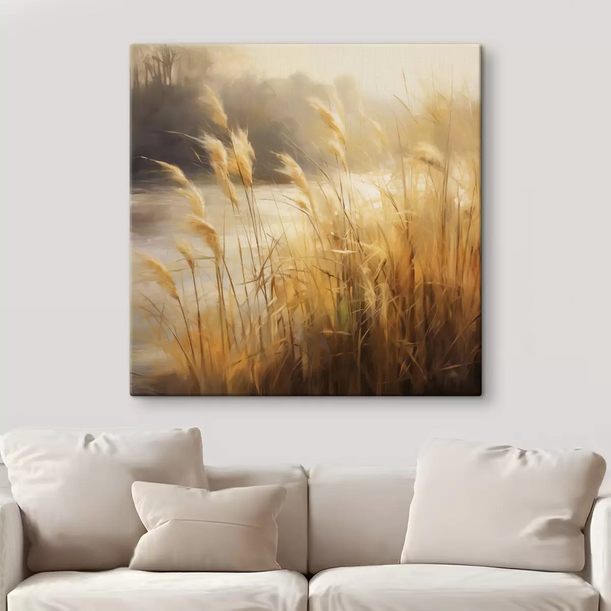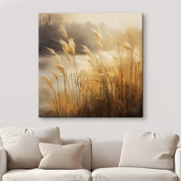 Картина На передньому плані — висока суха трава з колосками, а на задньому — озеро та дерева Арт. s48394