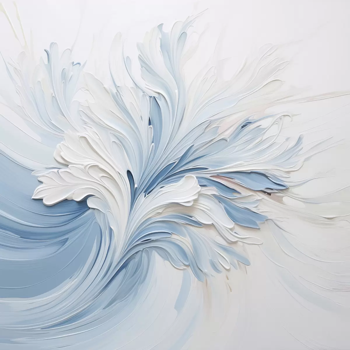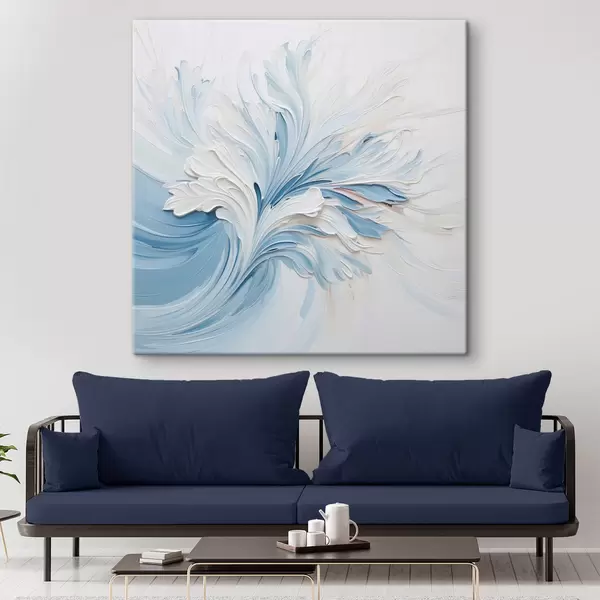 Картина Біло-блакитний абстрактний квітковий візерунок із рельєфними пелюстками та вигнутими лініями Арт. s48395