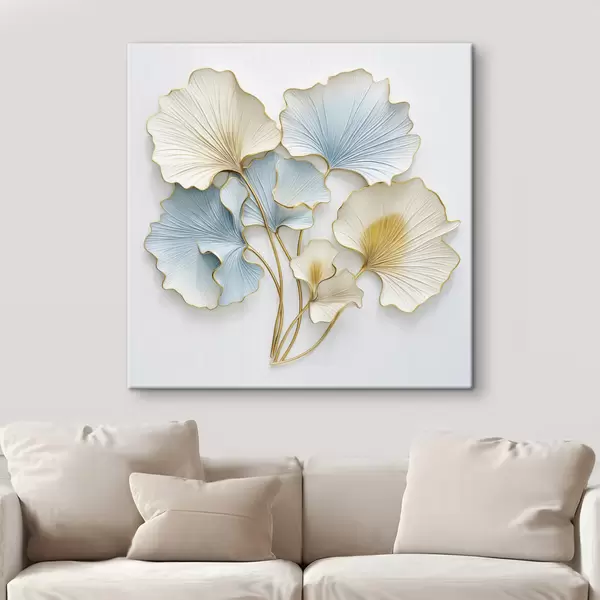 Картина Стилізовані листки гінкго з синіми та жовтими акцентами s48398