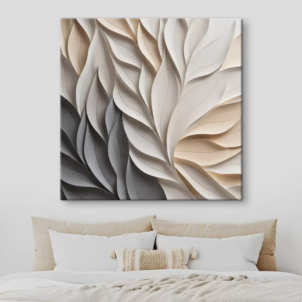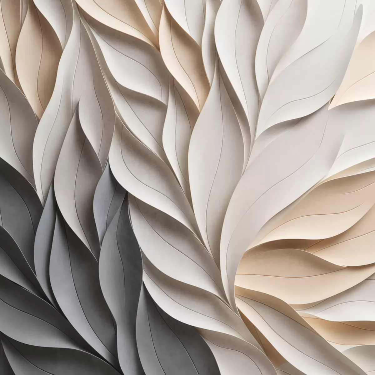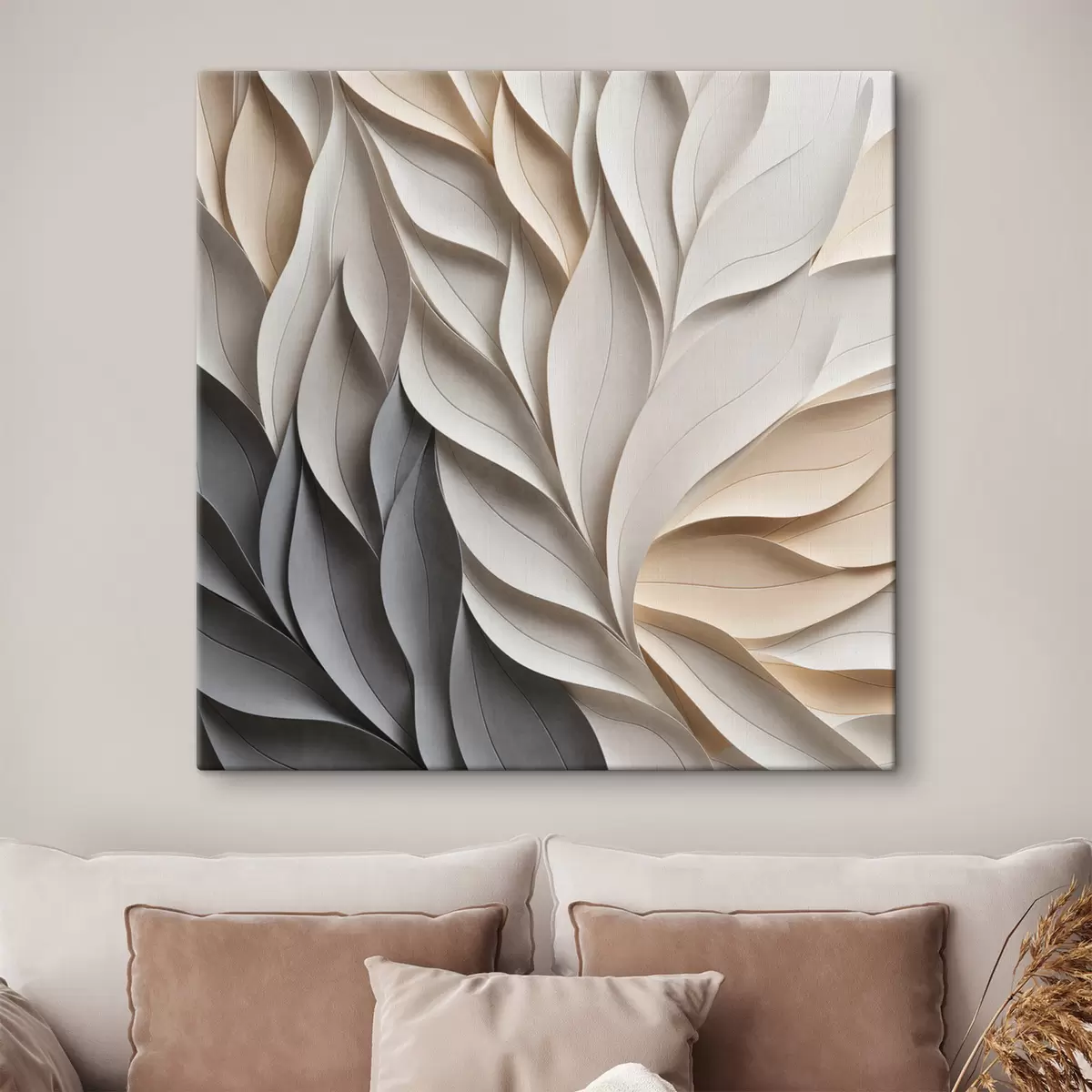 Картина Текстурований візерунок із перекриваючихся абстрактних листяних форм у нейтральних відтінках бежевого, кремового та сірого Арт. s48407