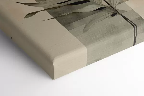 Картина Темно-зелена рослина з абстрактними геометричними фігурами та акварельними текстурами бежевого та зеленого кольорів Арт. s48410