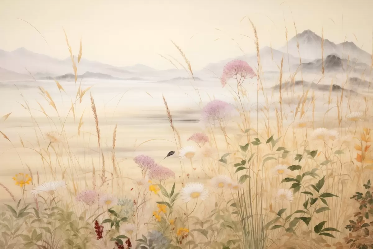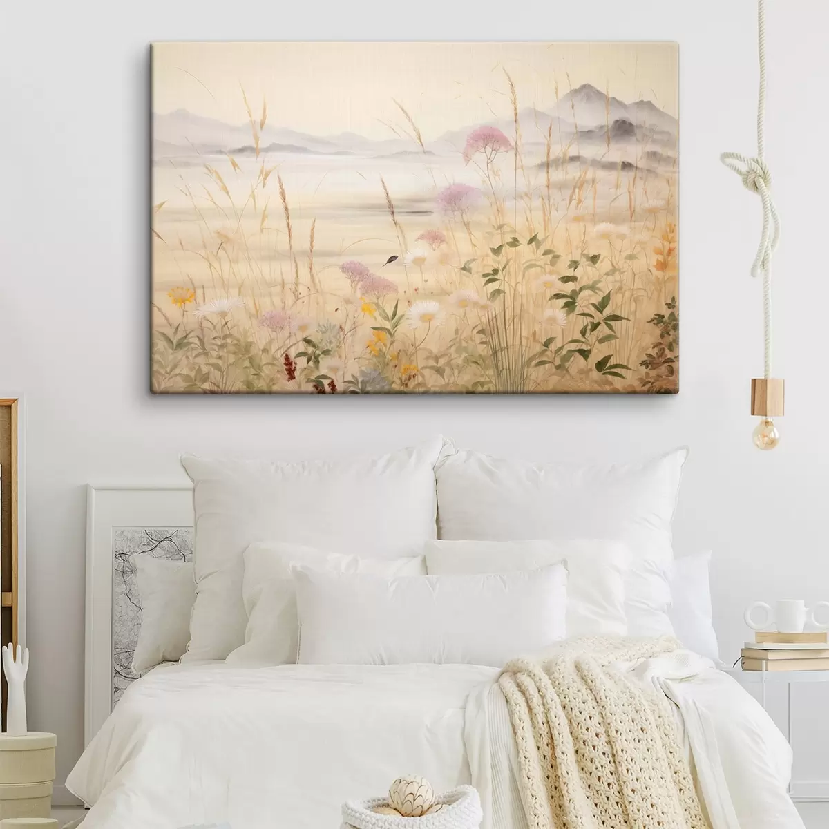 Картина Поле з бежевими квітами, лугові трави, витончений пейзаж s48480
