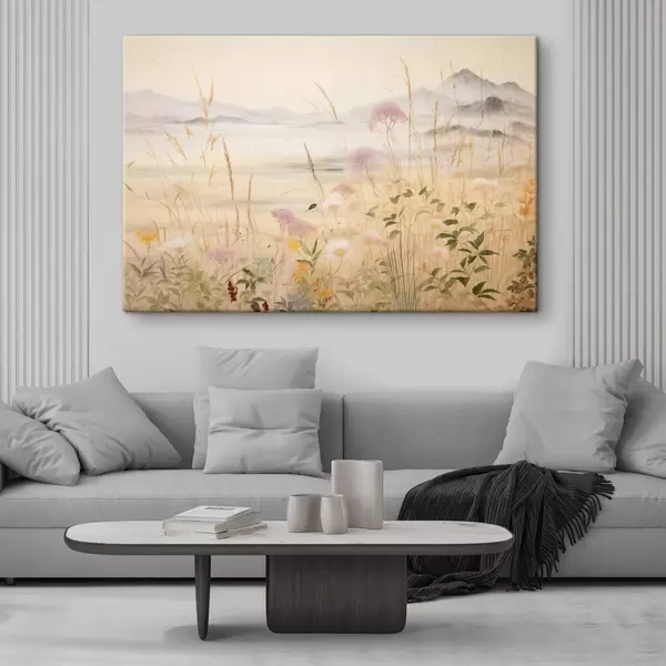 Картина Поле з бежевими квітами, лугові трави, витончений пейзаж Арт. s48480