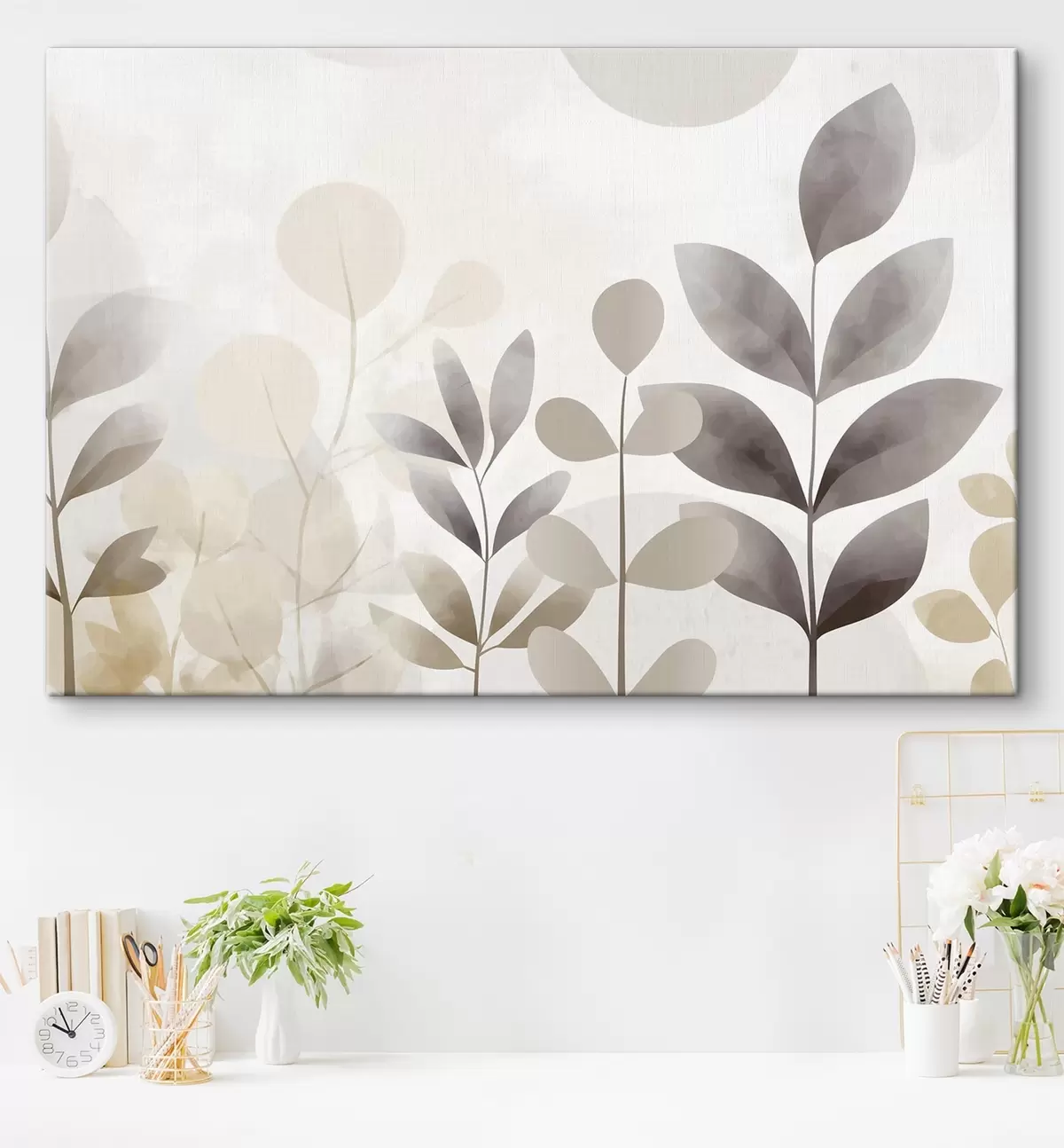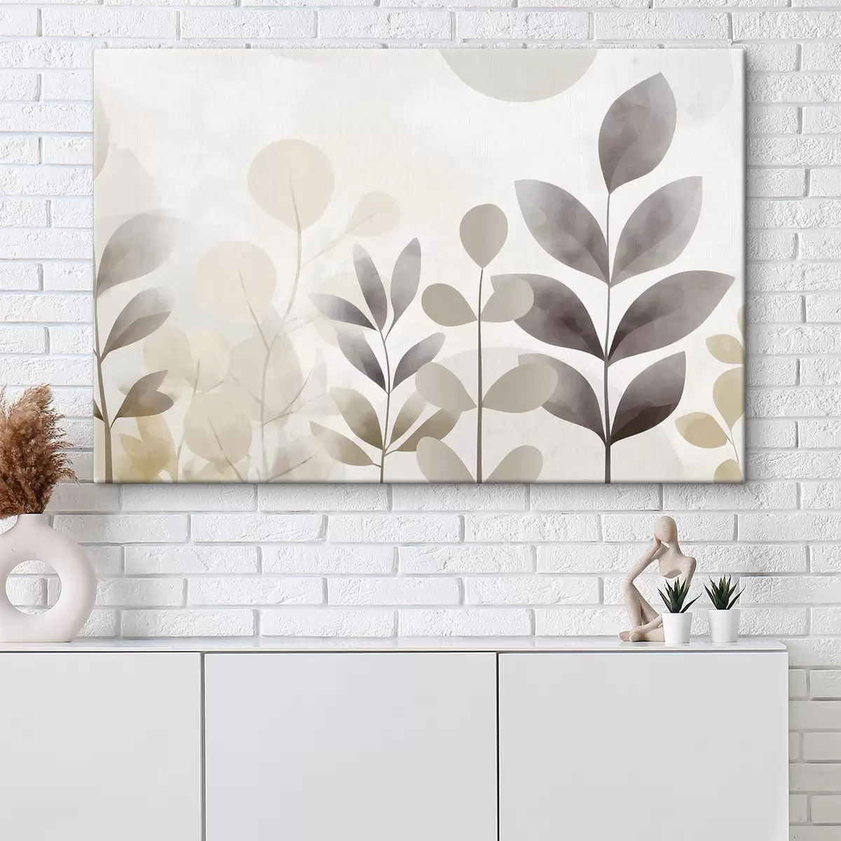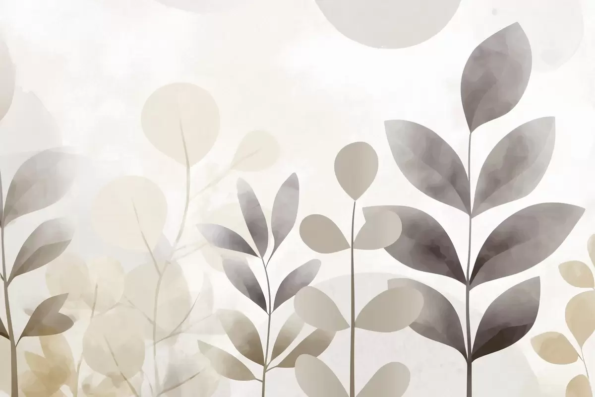 Картина Бежеві та сірі силуети листя, мінімалізм Арт. s48487