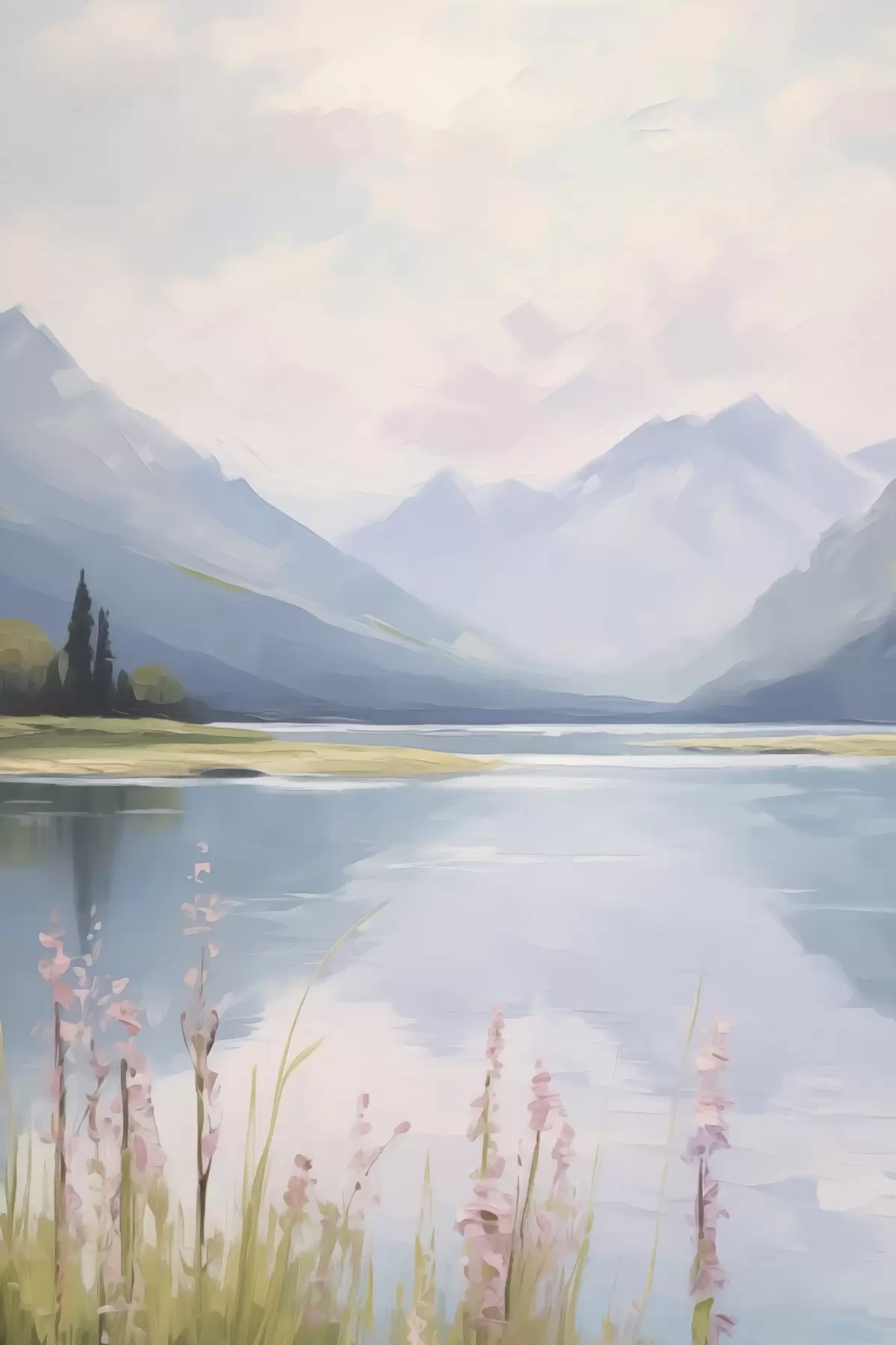 Картина Озеро біля гір, імітація живопису Арт. s48503