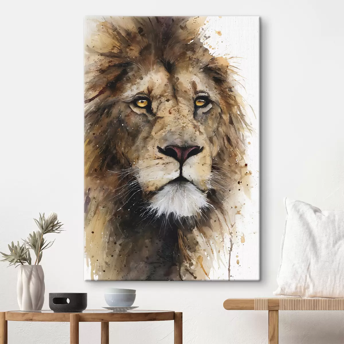 Картина потужний лев, виконаний у стилі акварелі Арт. s48525