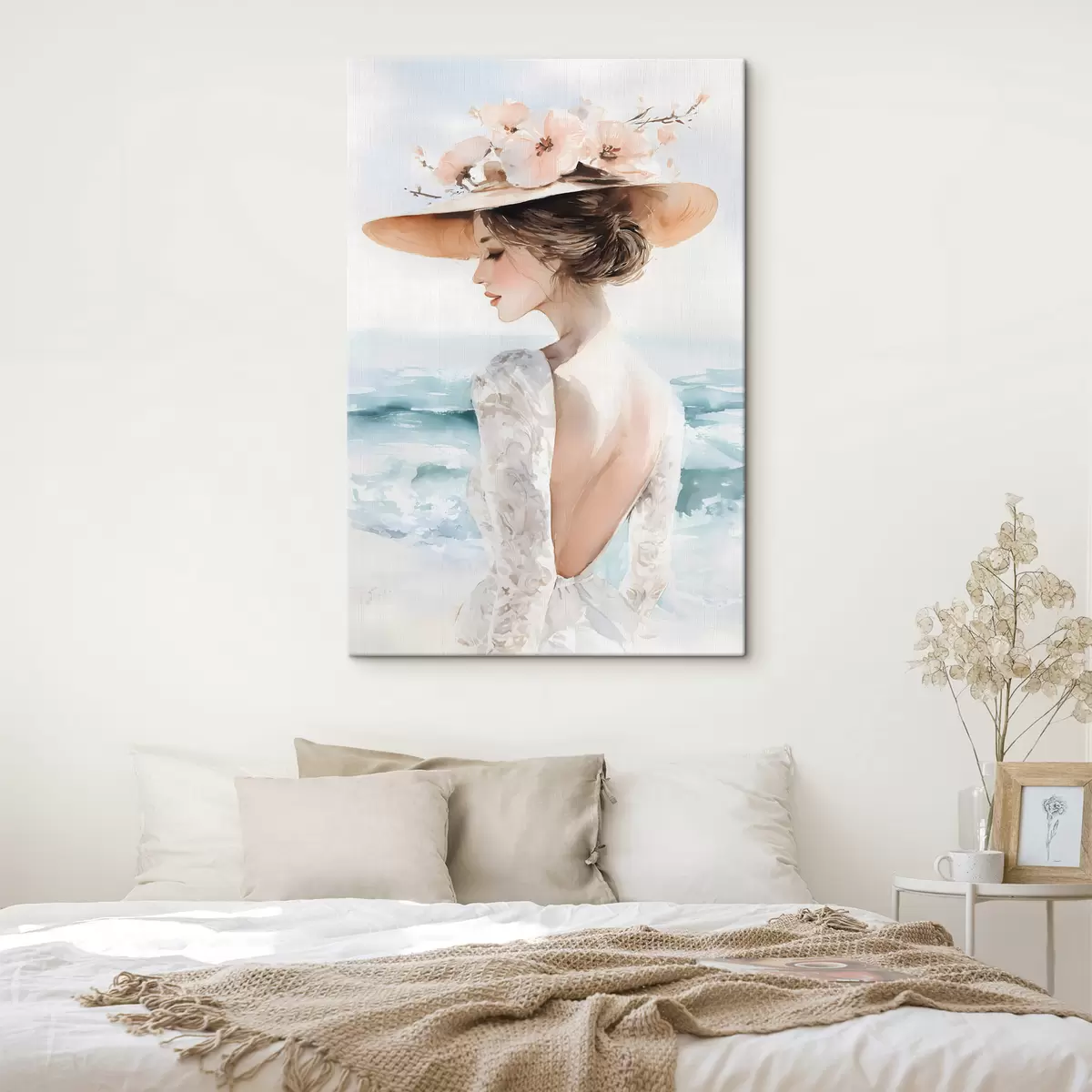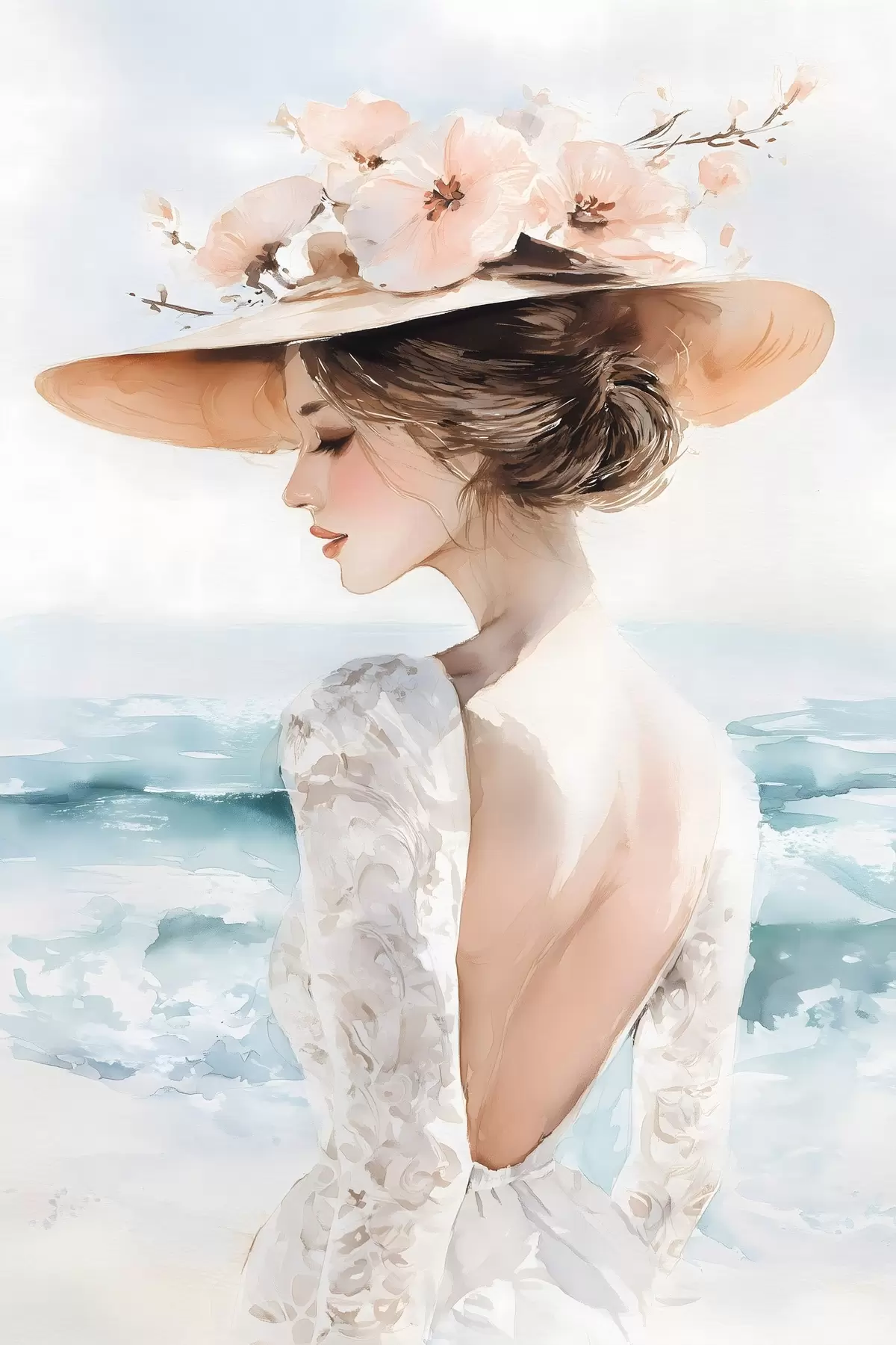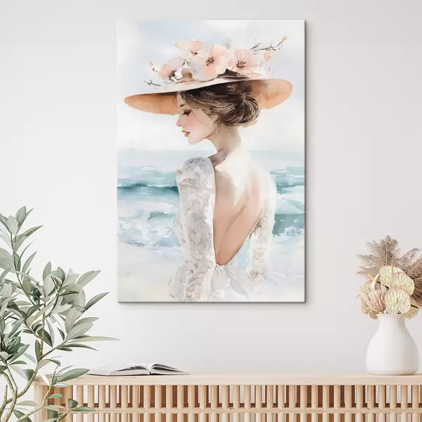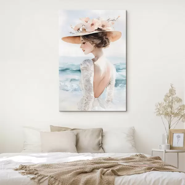 Картина романтична дівчина біля моря в капелюсі s48547