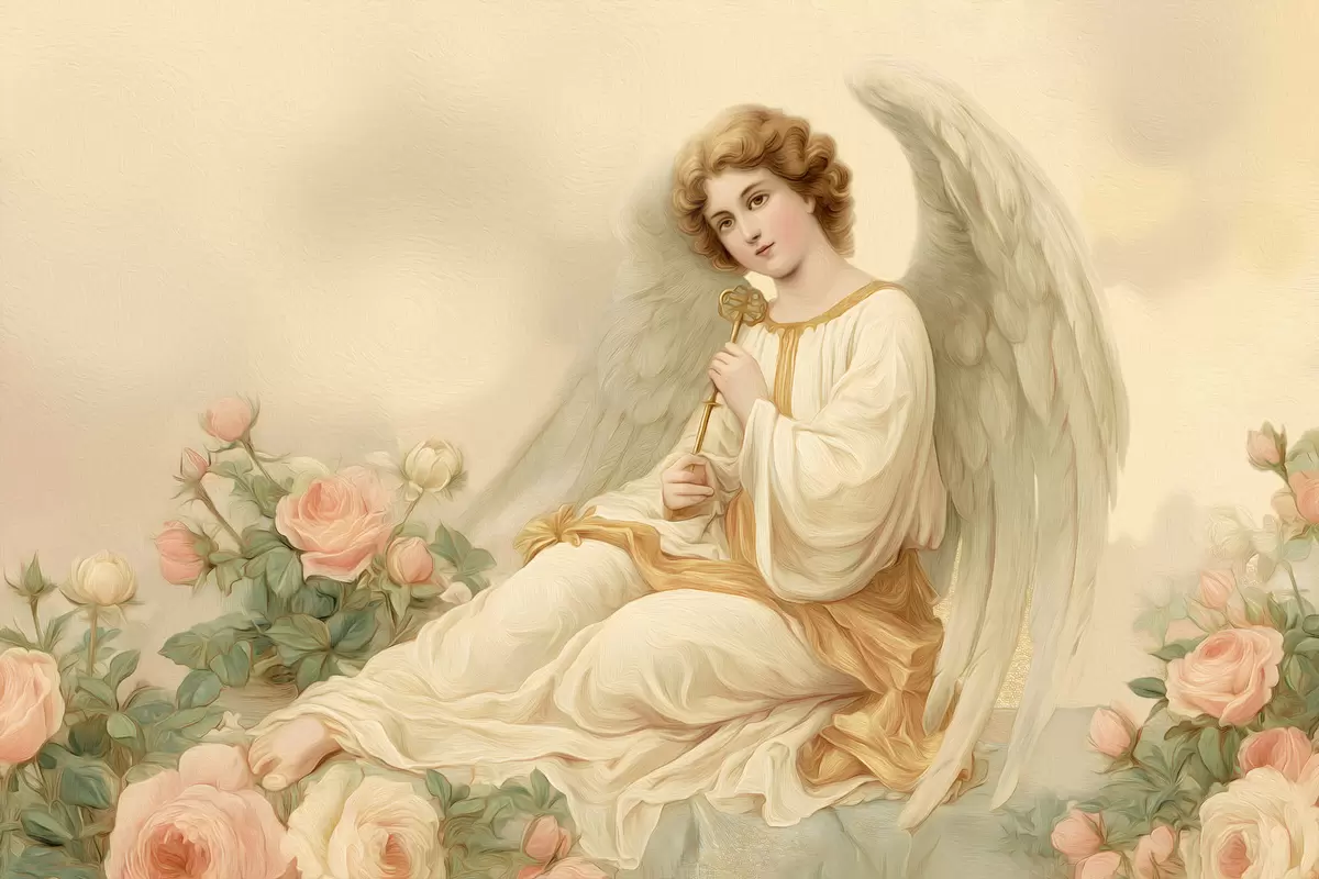 Картина ангел серед квітів у стилі олійного живопису s48554