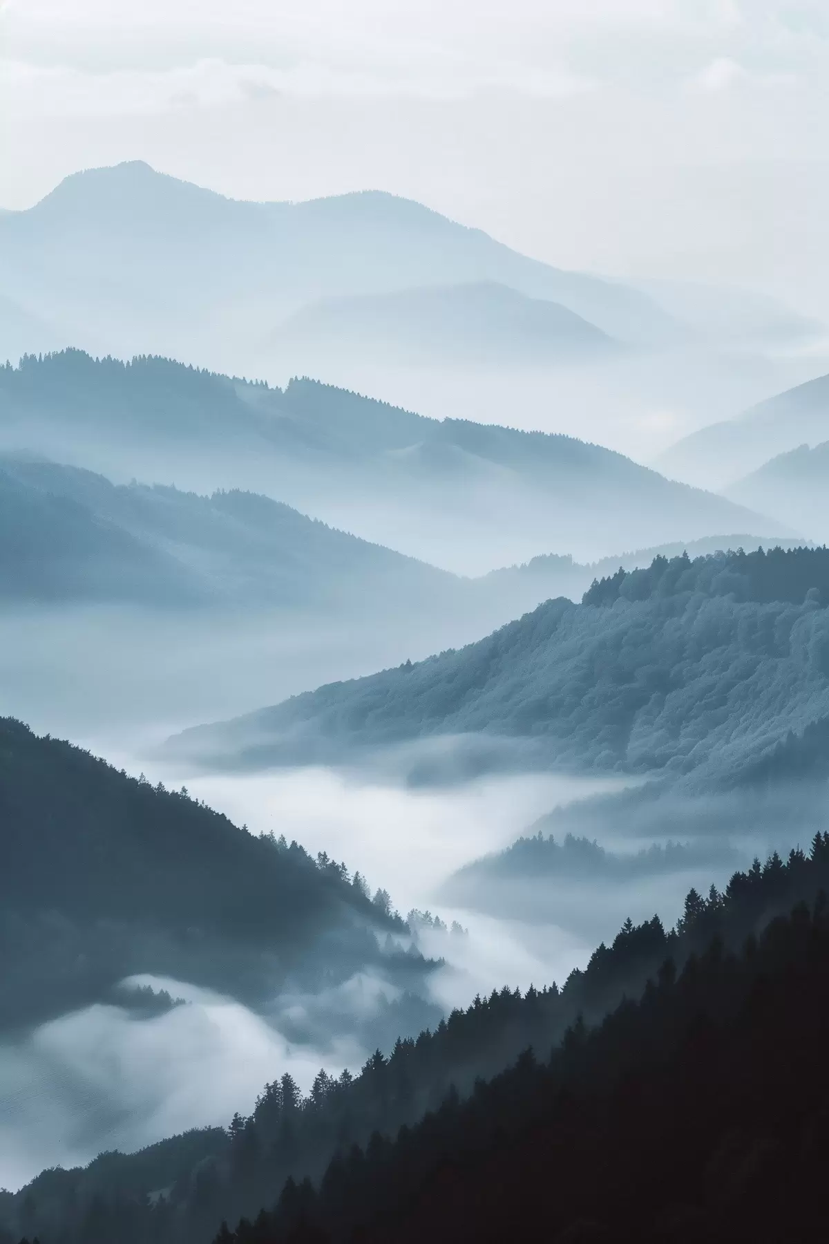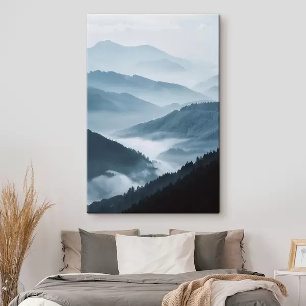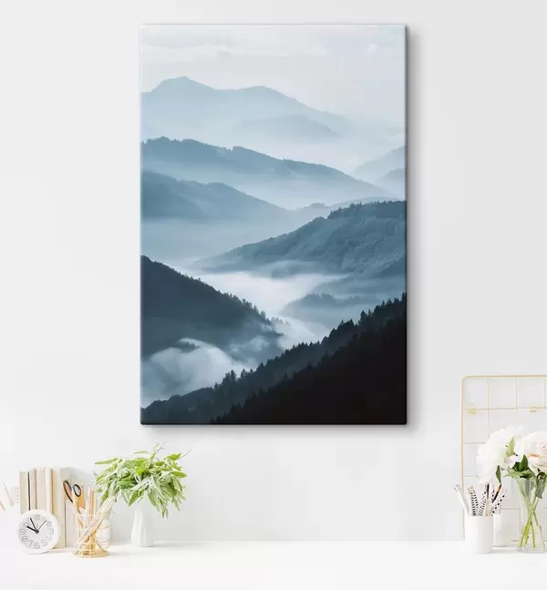 Картина Затуманені гори, блакитний пейзаж s48567