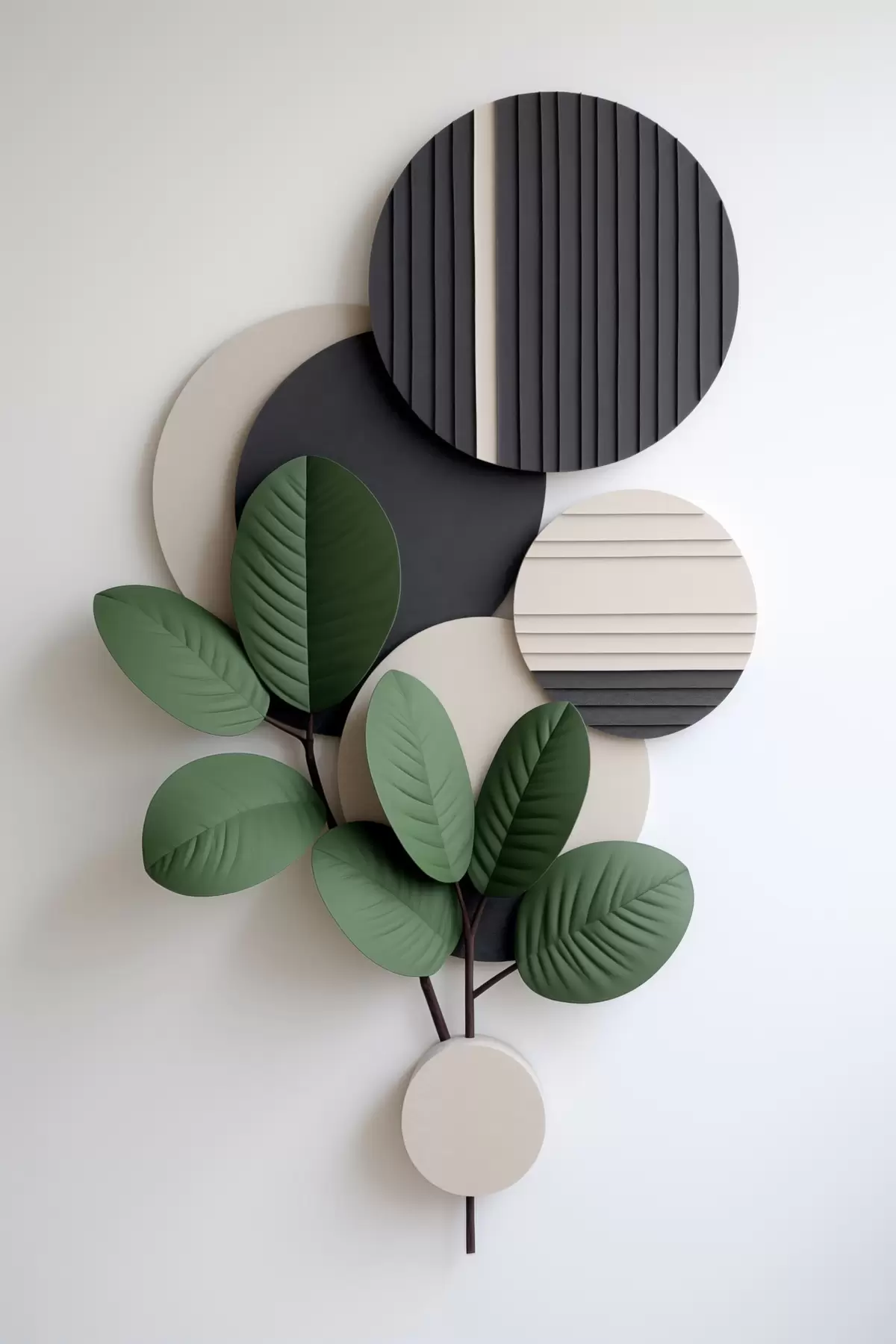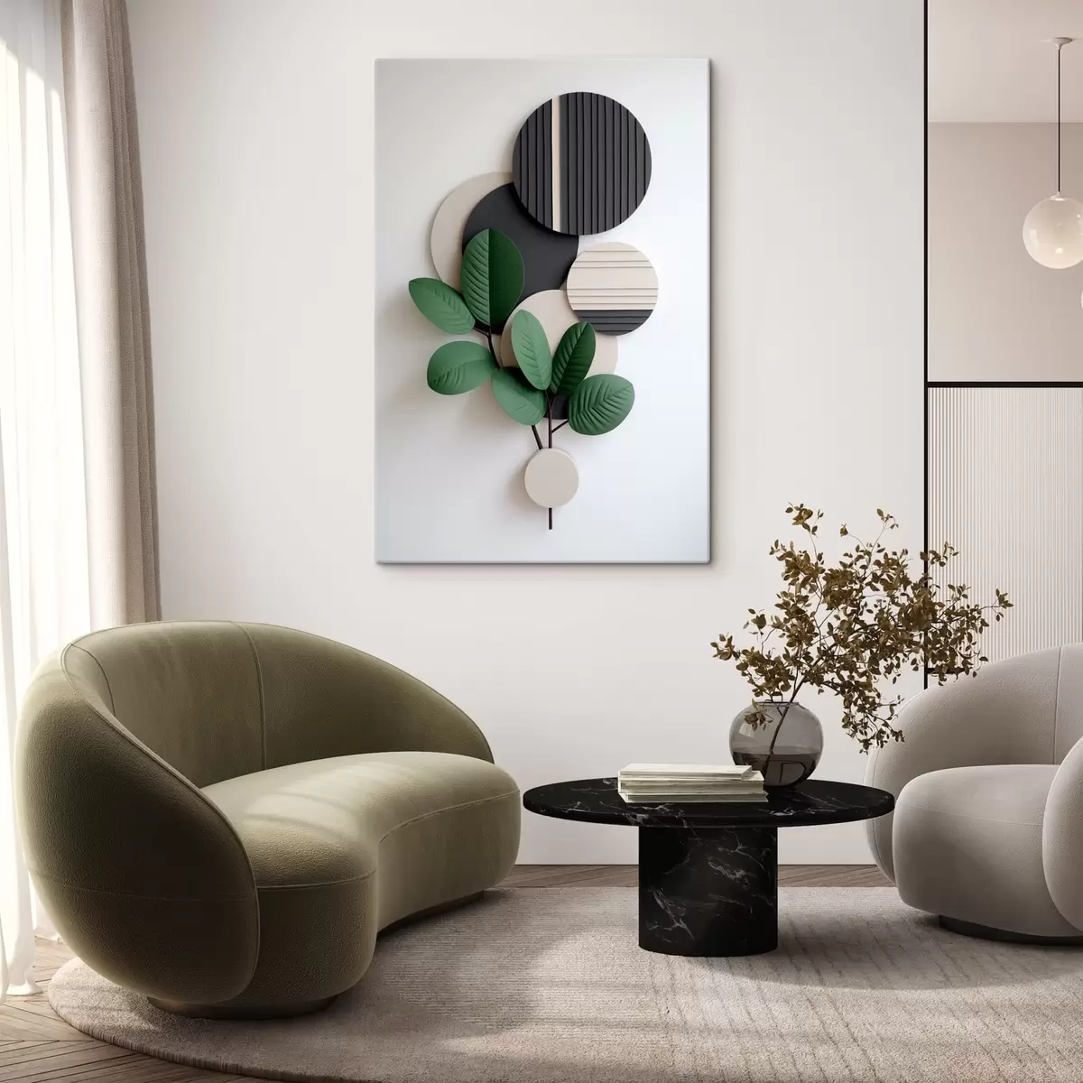 Картина Зелене листя з круглими рельєфними елементами Арт. s48603