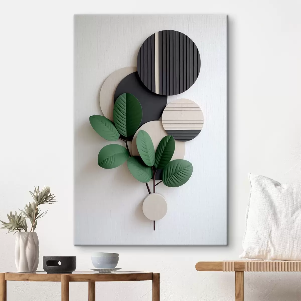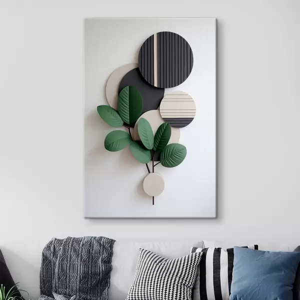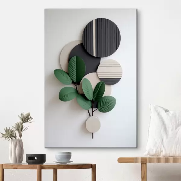 Картина Зелене листя з круглими рельєфними елементами s48603