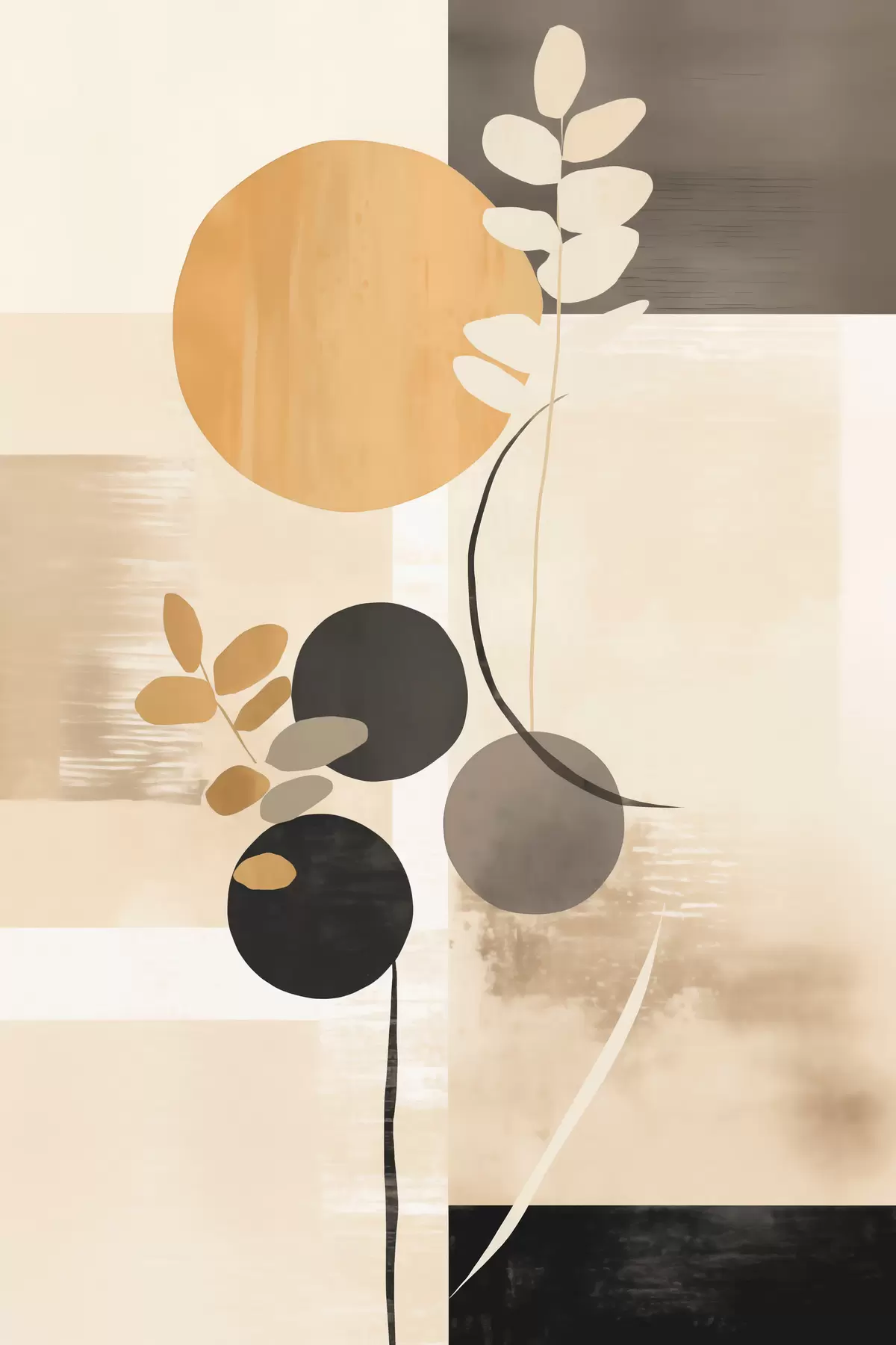 Картина Абстракція з листям і колами s48612