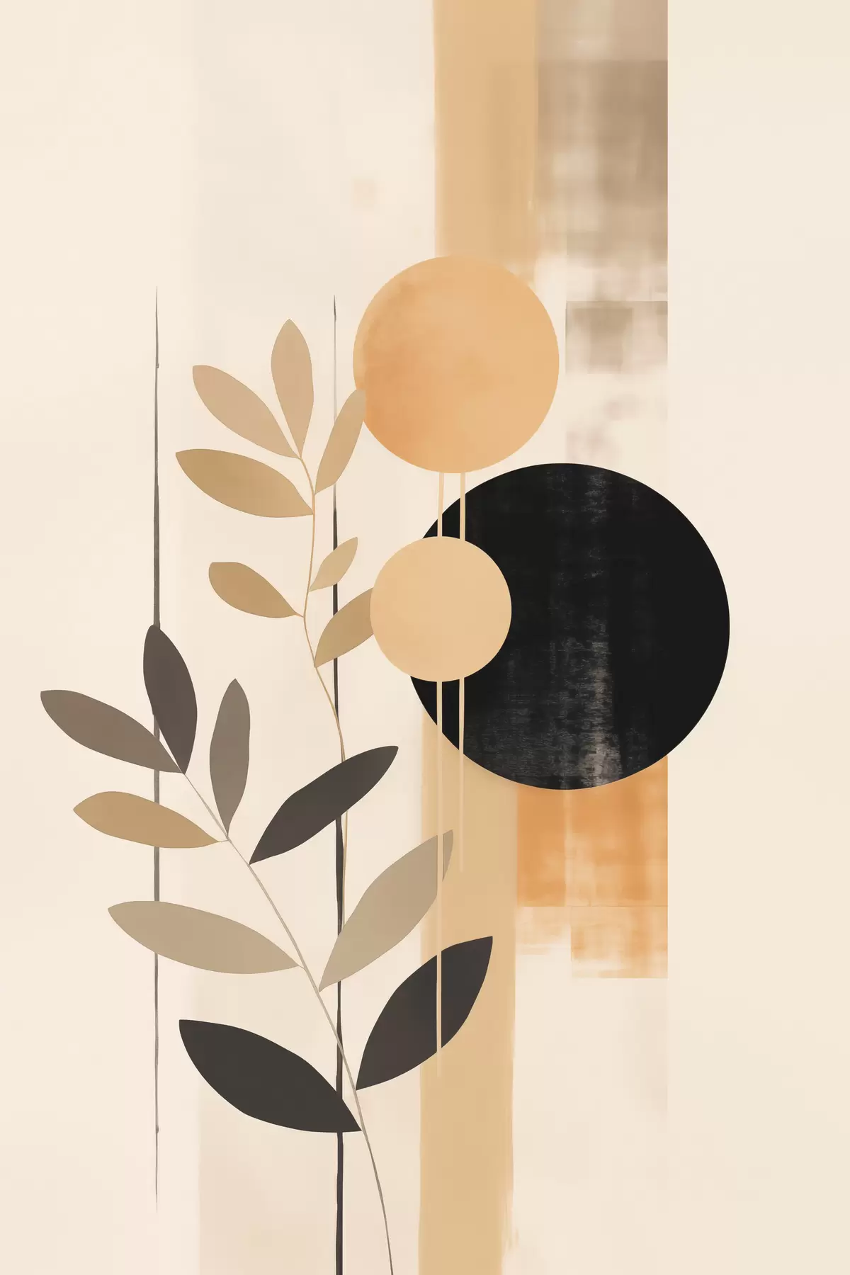 Картина Абстракція з листям і колами s48613