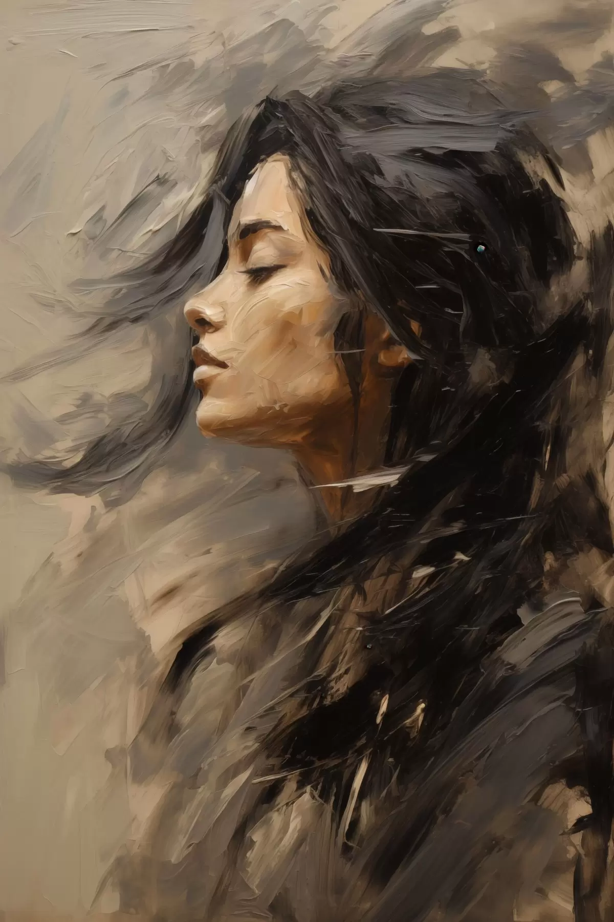 Картина Жіночий профіль, виконаний у живописному стилі, теплі тони s48621