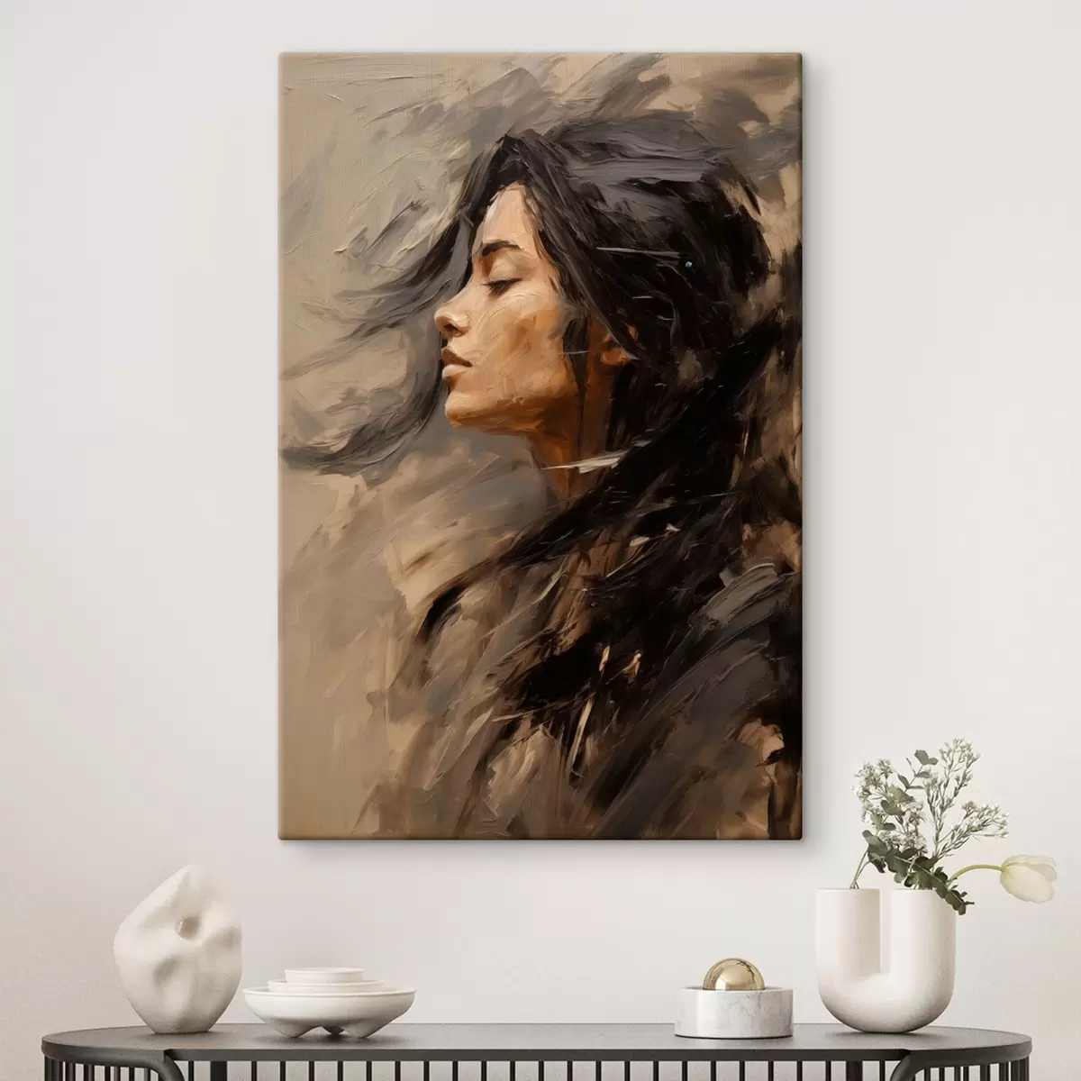 Картина Жіночий профіль, виконаний у живописному стилі, теплі тони Арт. s48621