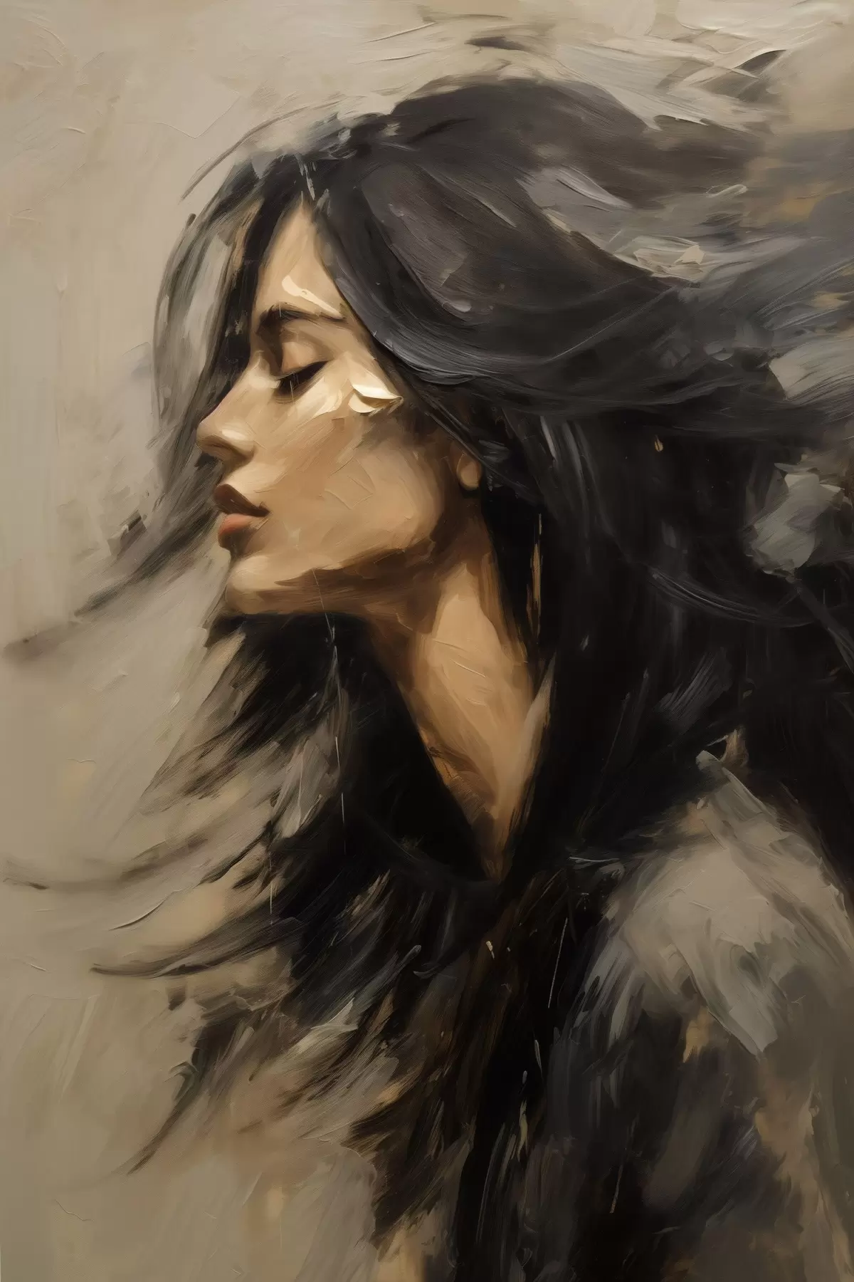 Картина Портрет жінки з розпущеним волоссям у живописному стилі s48622