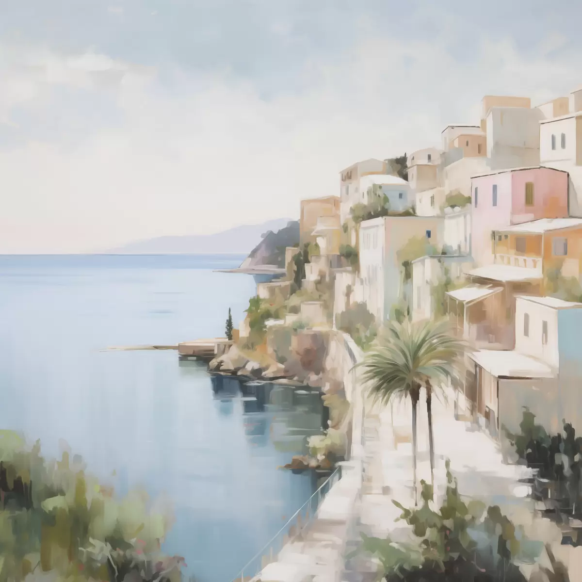 Картина Пейзаж міста біля моря, імітація живопису s48674