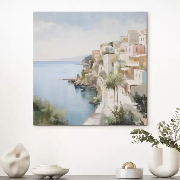 Картина Пейзаж міста біля моря, імітація живопису Арт. s48674