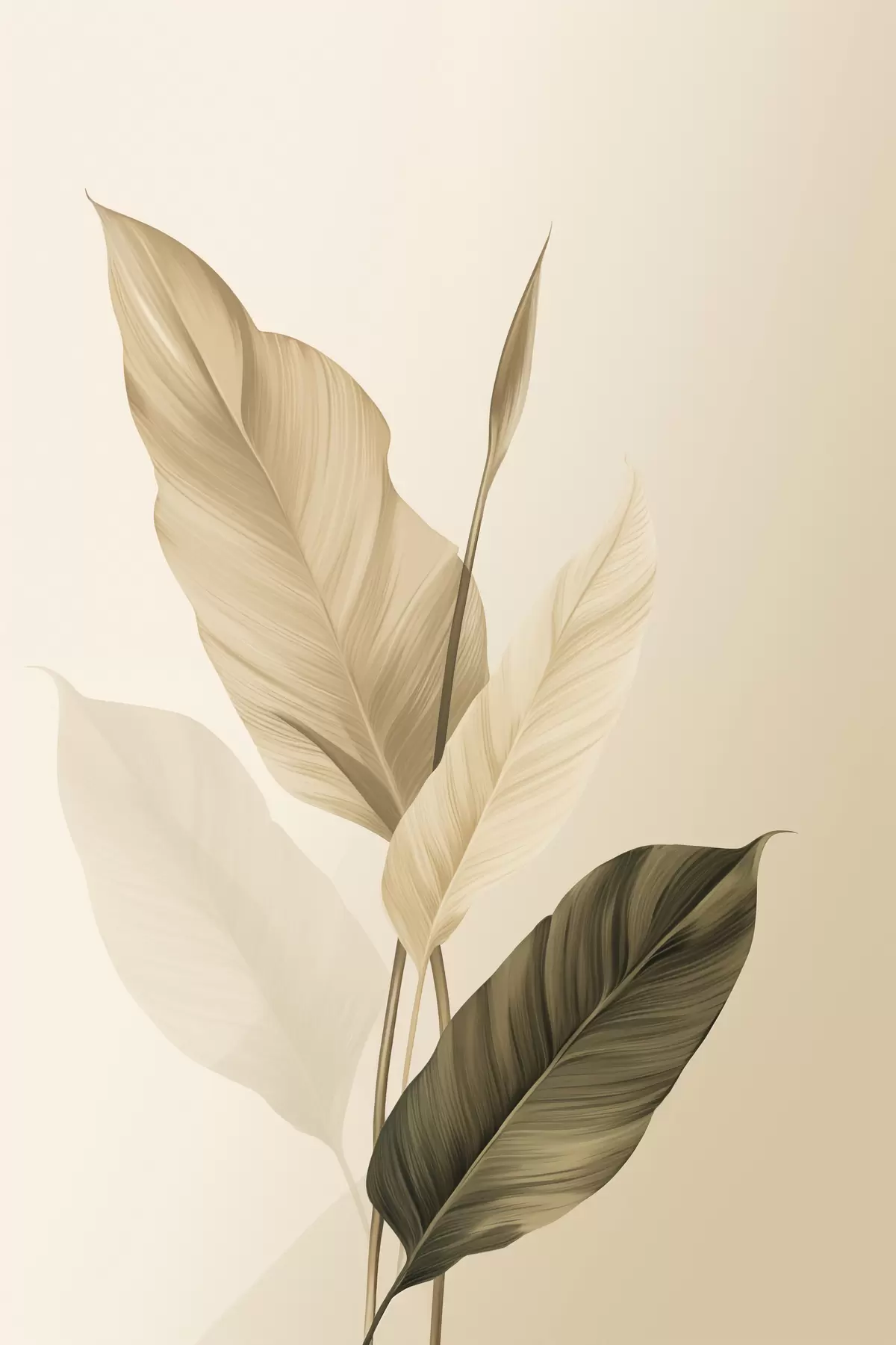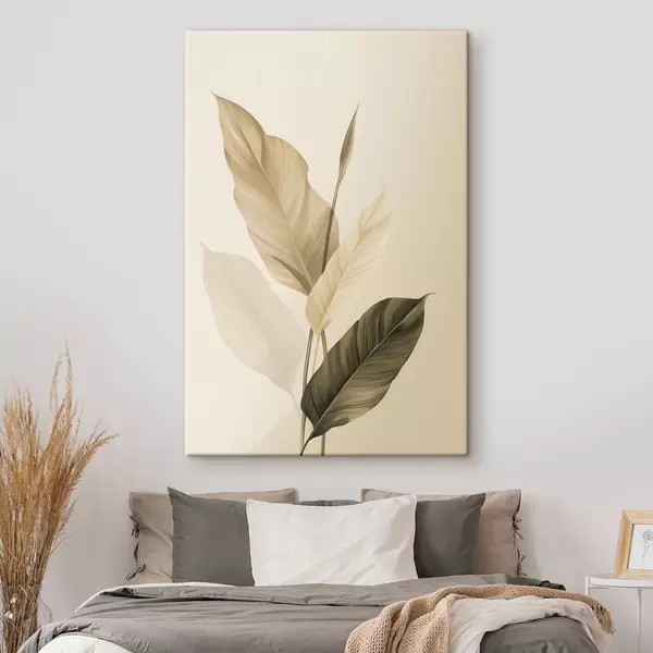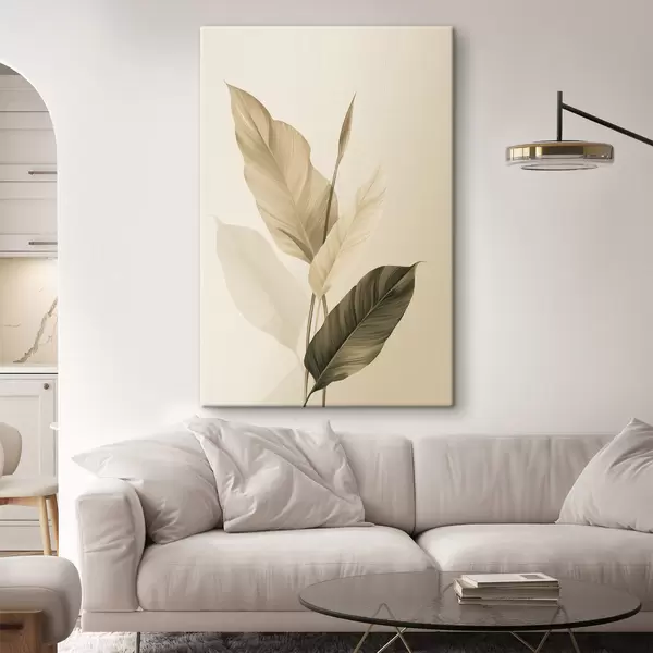 Картина Велике тропічне листя бежевих і коричневих відтінків на світлому тлі Арт. s48725