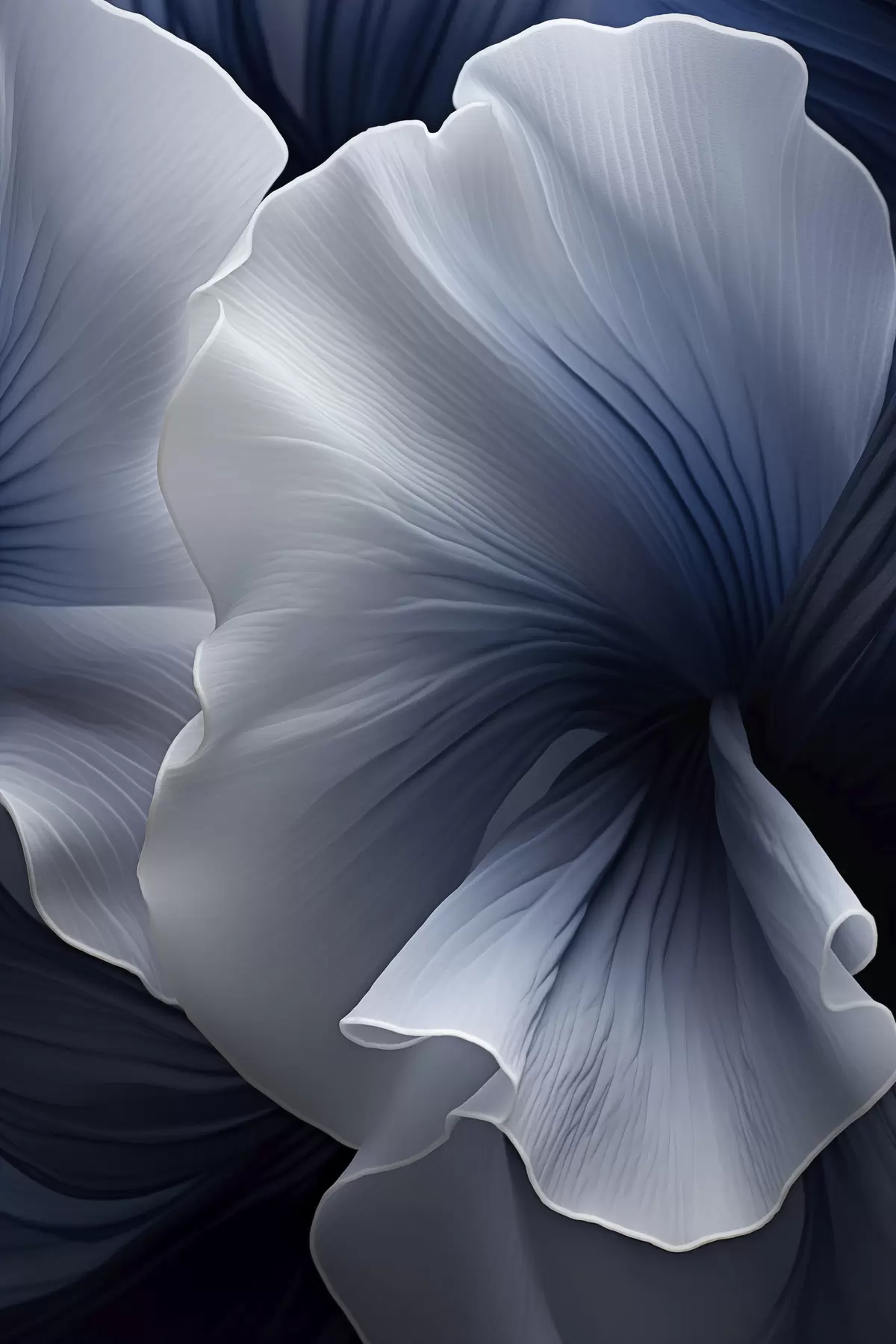 Картина Абстрактні синьо-білі пелюстки квітів на темному тлі s48731