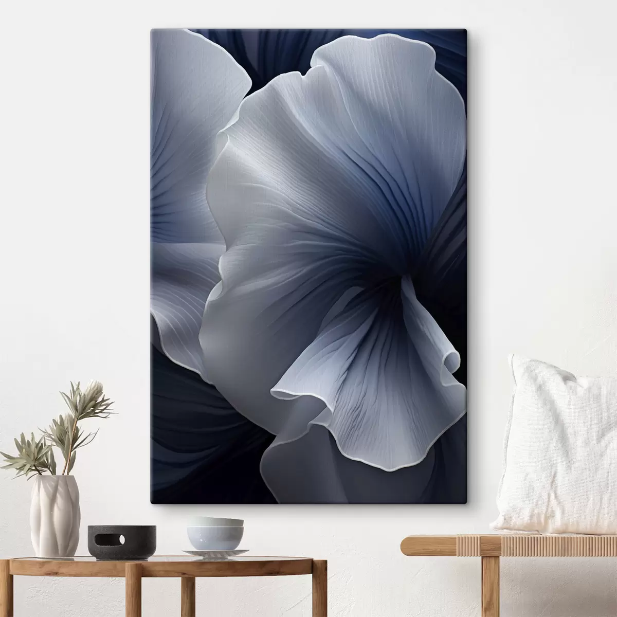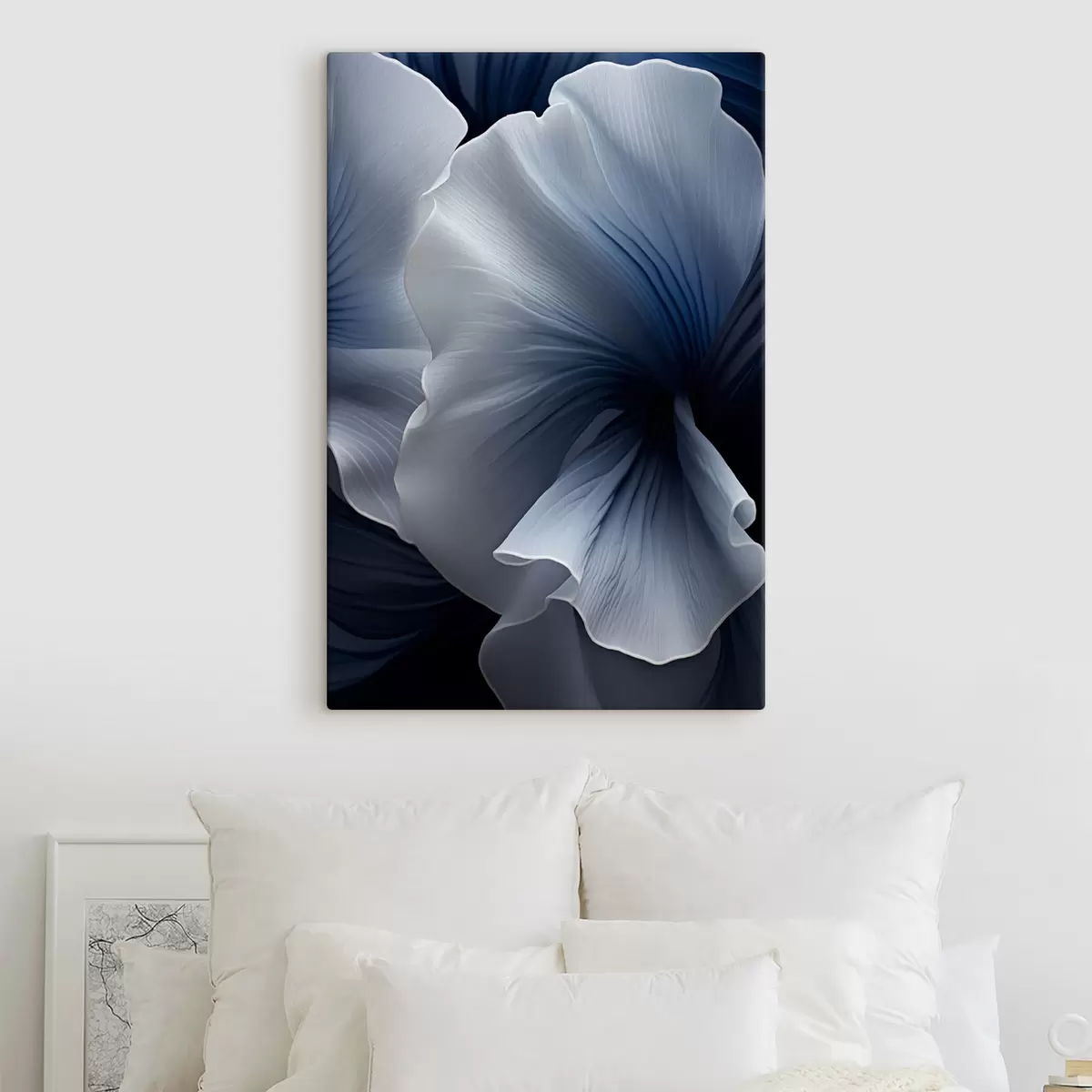 Картина Абстрактні синьо-білі пелюстки квітів на темному тлі Арт. s48731