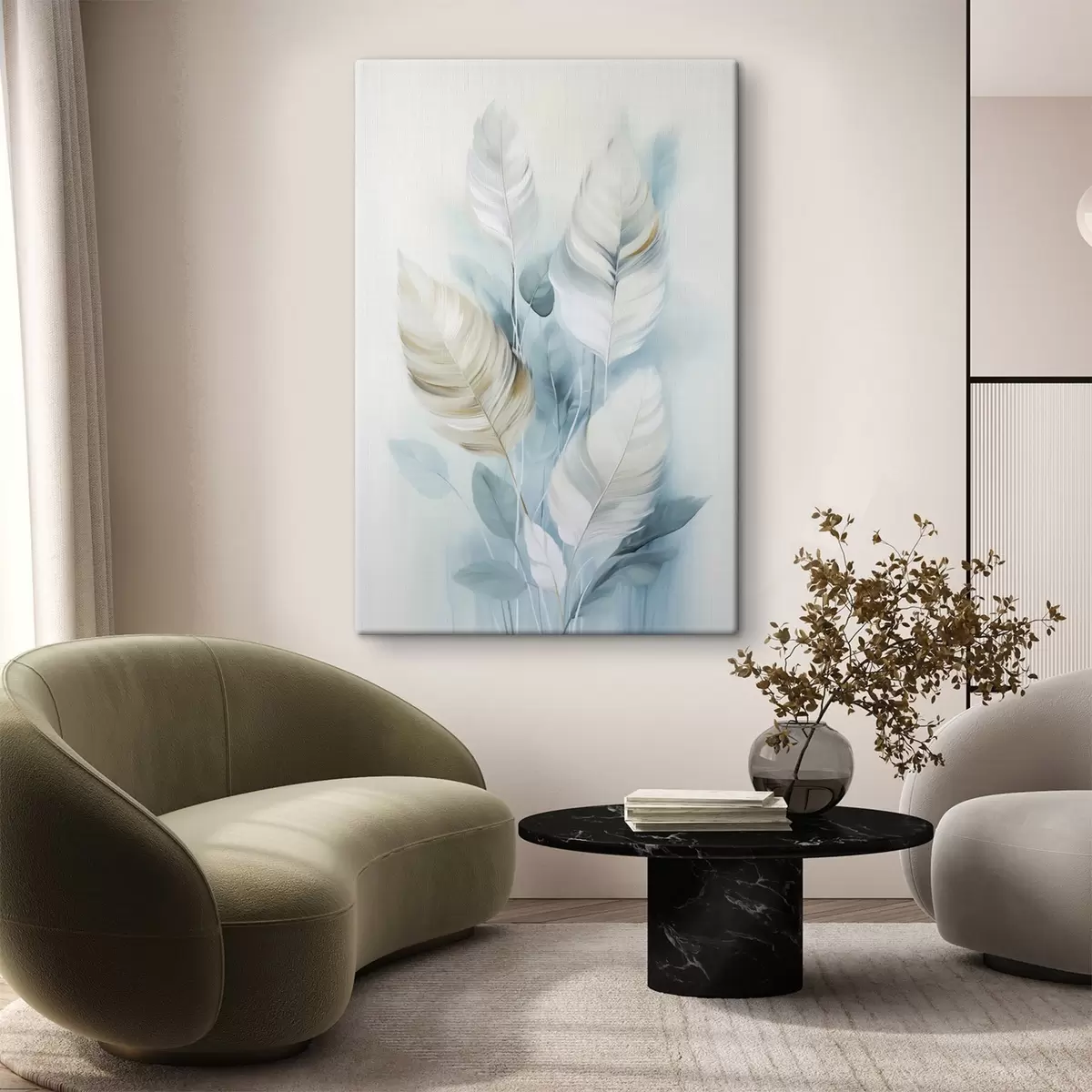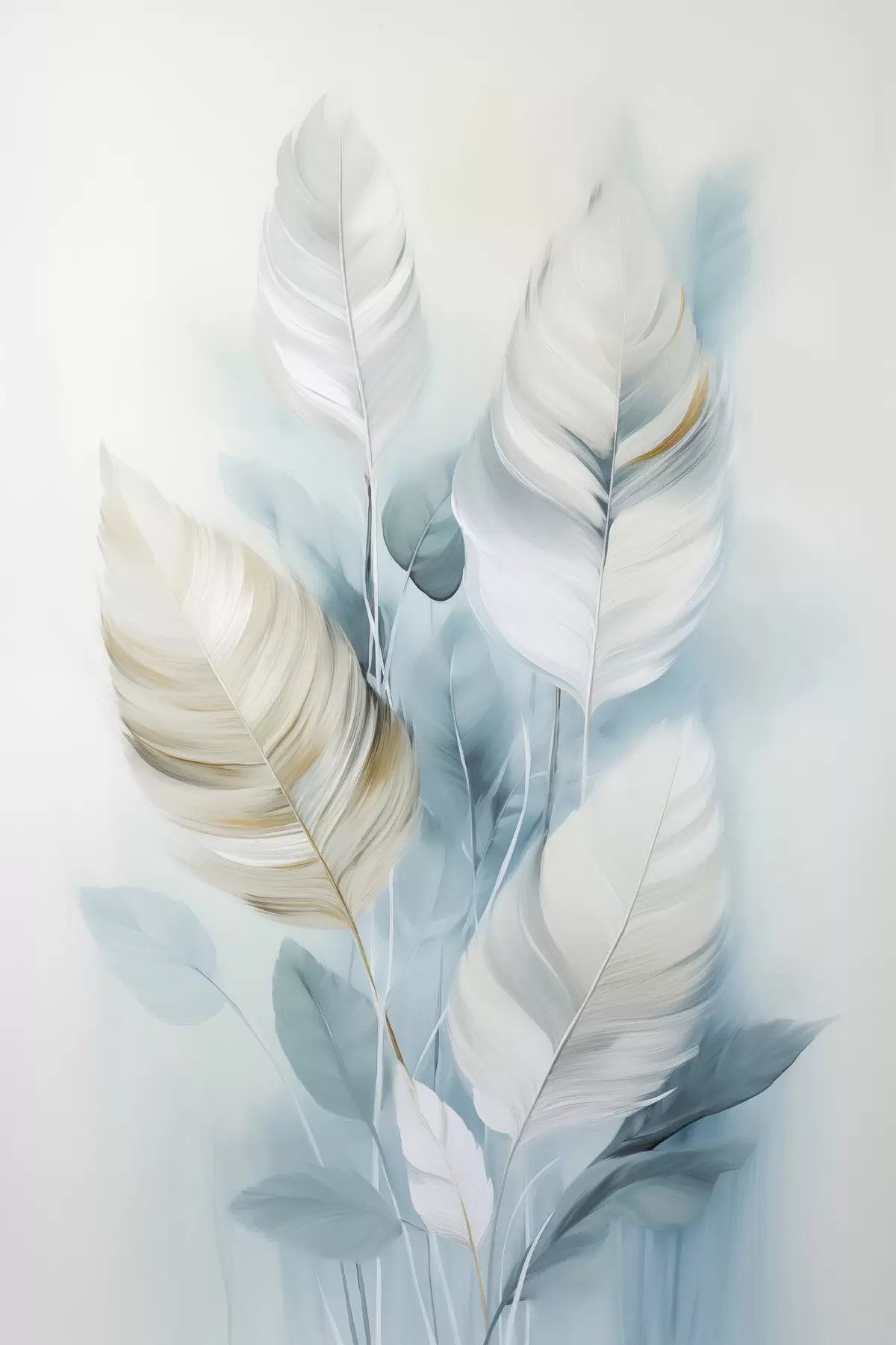 Картина Велике м'яке пір'я блакитних і білих відтінків з ніжними бежевими листочками Арт. s48750