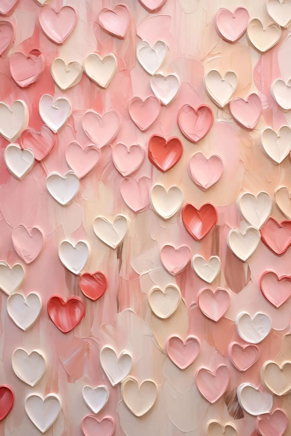 Картина Сердечка різних відтінків персикового та рожевого кольорів, виконані у фактурному, розмальованому стилі s48752