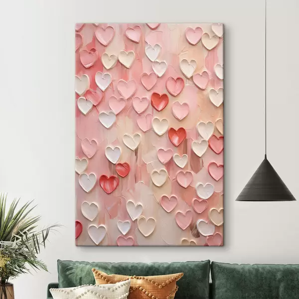 Картина Сердечка різних відтінків персикового та рожевого кольорів, виконані у фактурному, розмальованому стилі Арт. s48752