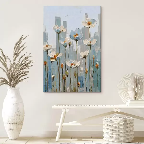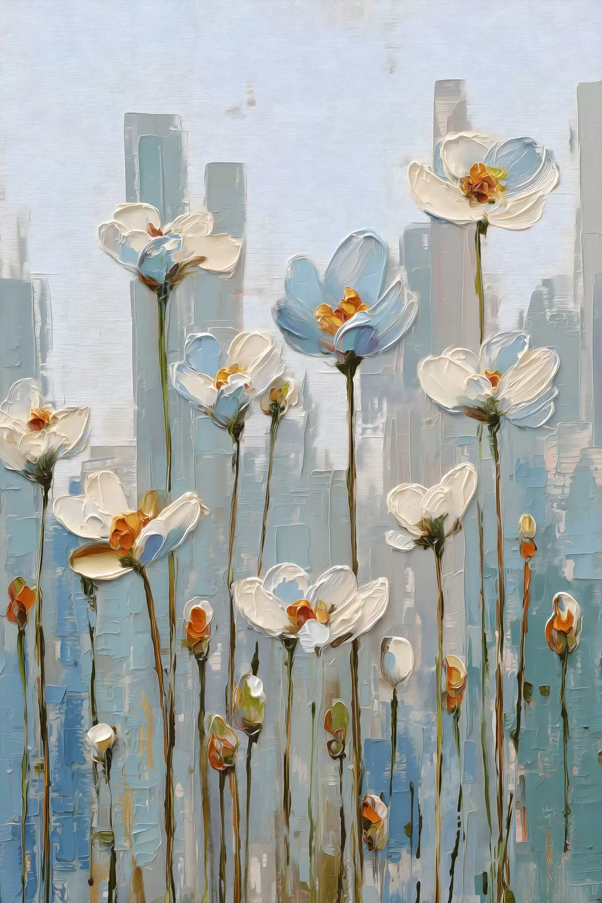 Картина квіти на тлі міста, у стилі олійного живопису s48786