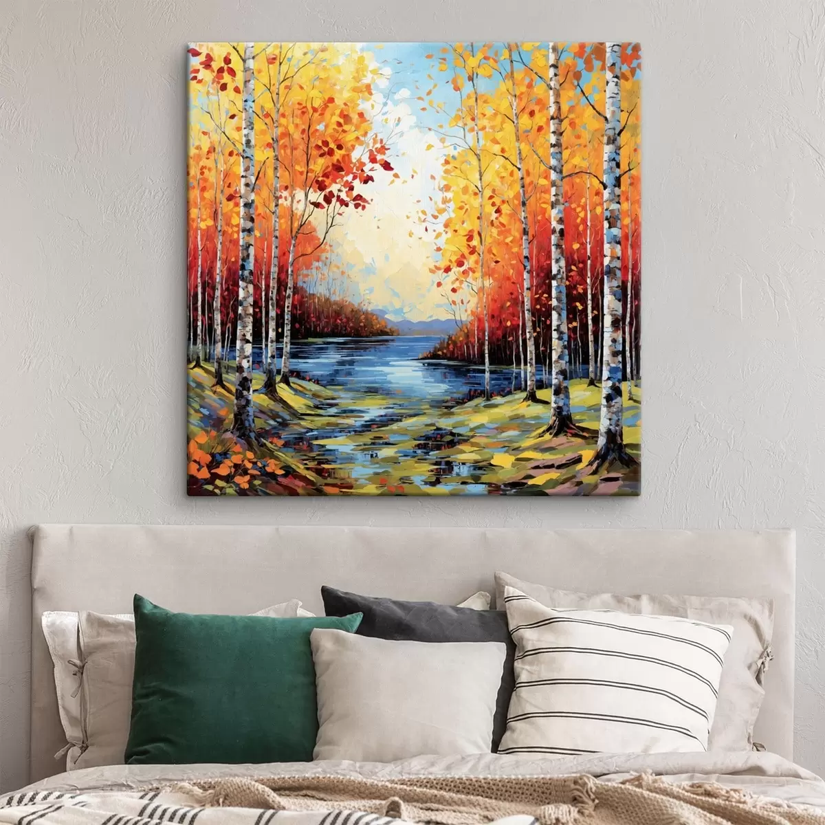 Картина Імпресіонізм: осінній березовий ліс із річкою Арт. s48809