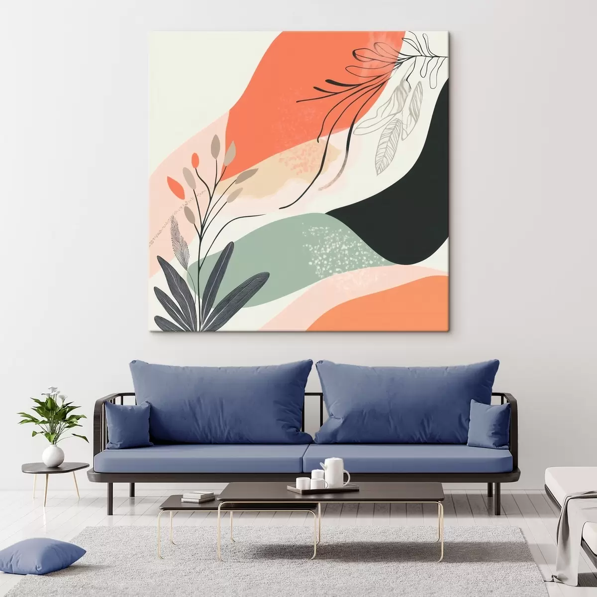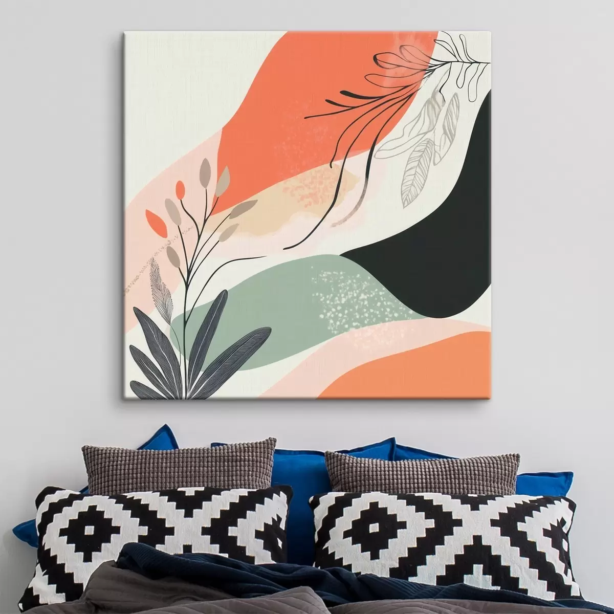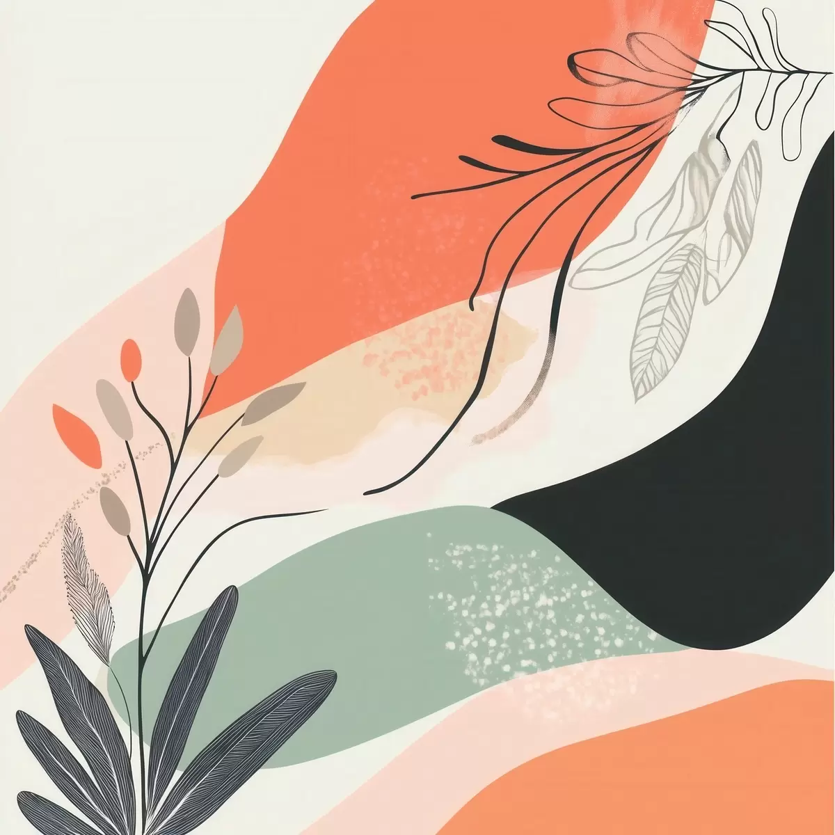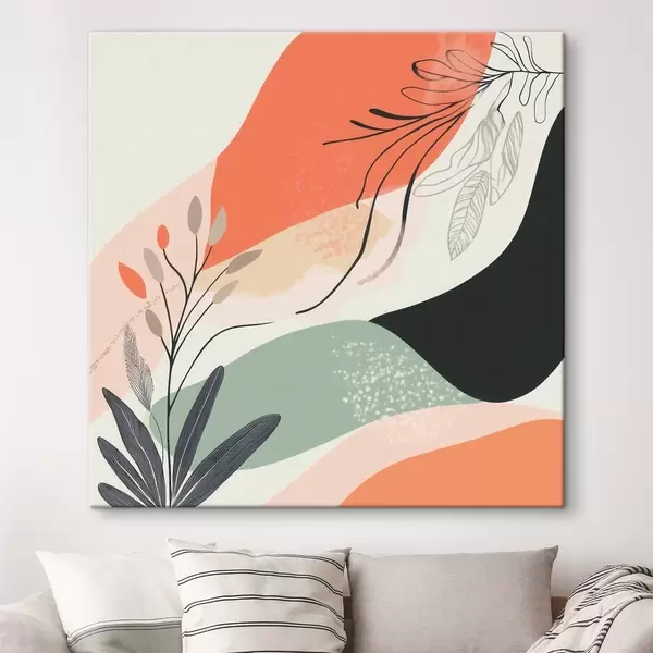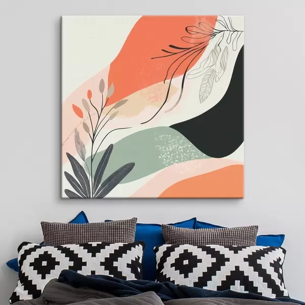 Картина Стилізовані рослинні мотиви на тлі акварельних плям s48839