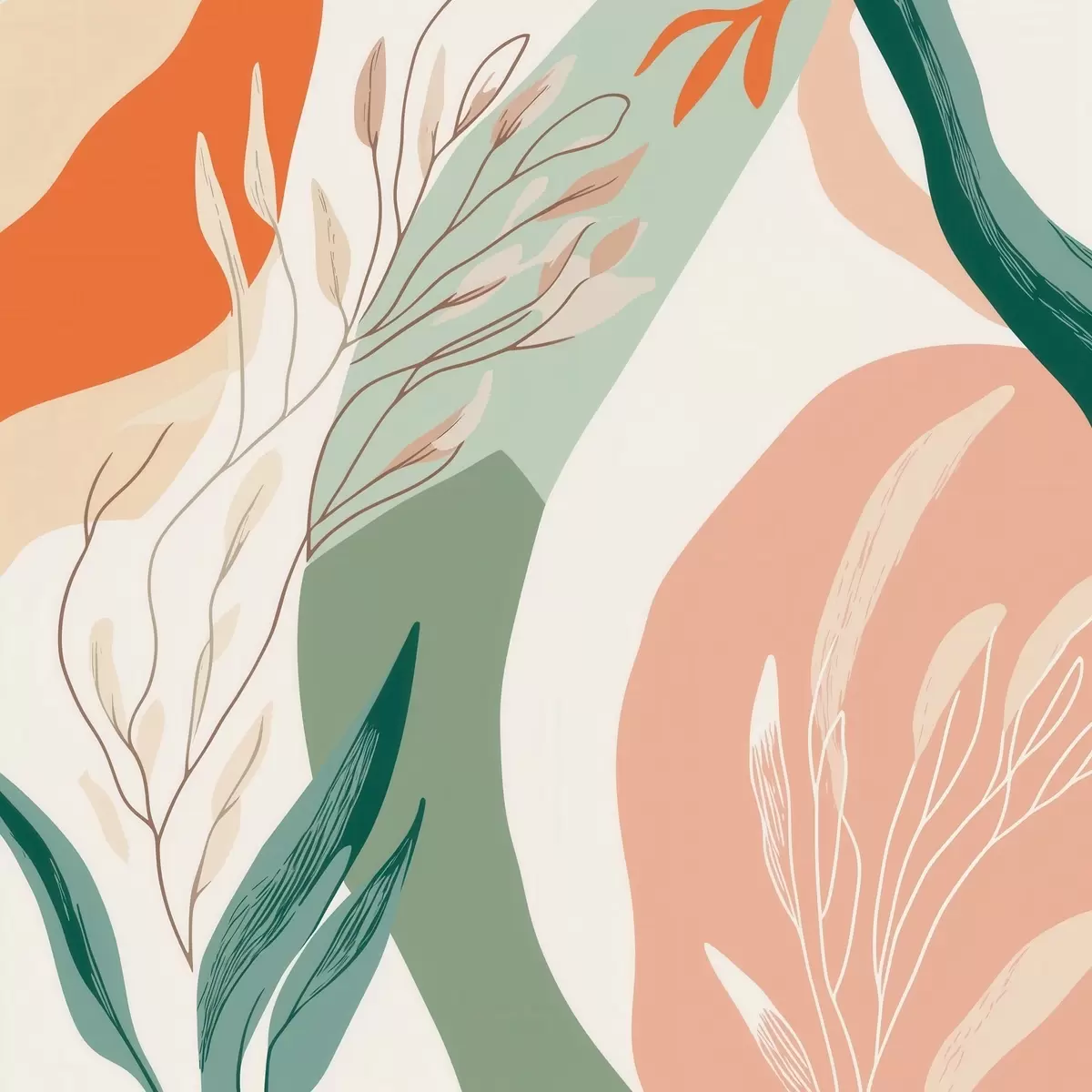 Картина Ботанічне мистецтво з м'якими формами у коралово-зеленій гамі s48840