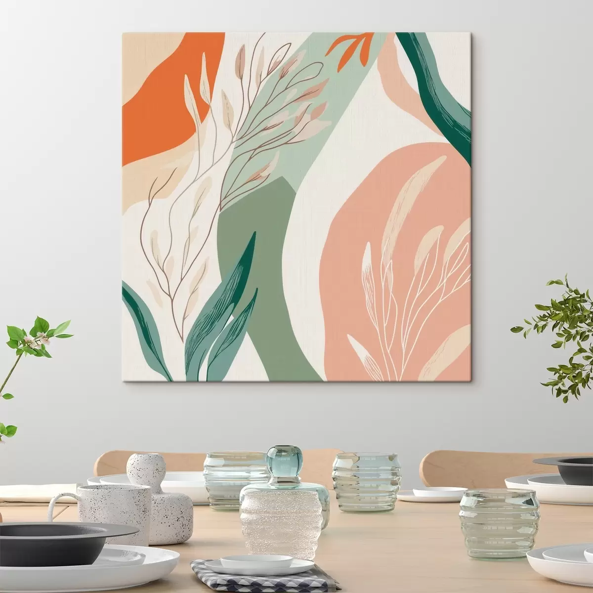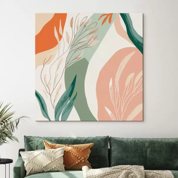 Картина Ботанічне мистецтво з м'якими формами у коралово-зеленій гамі Арт. s48840