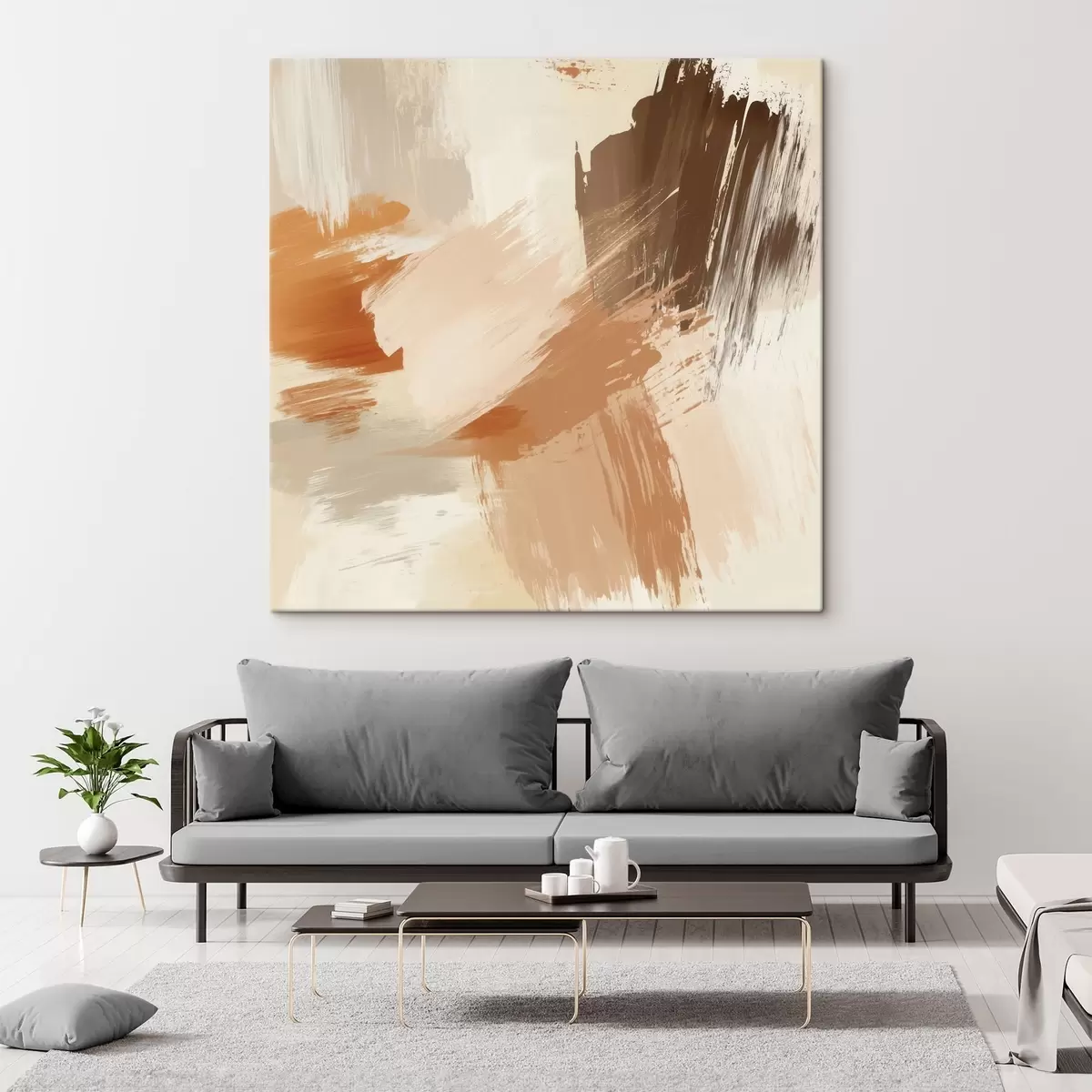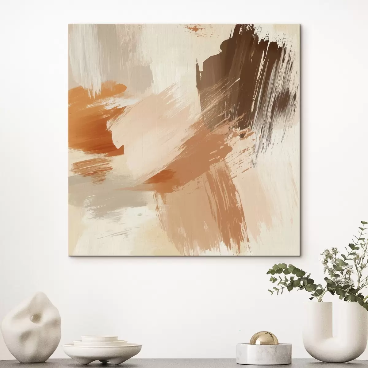 Картина Імітація абстрактних мазків у пісочних та коричневих тонах s48857